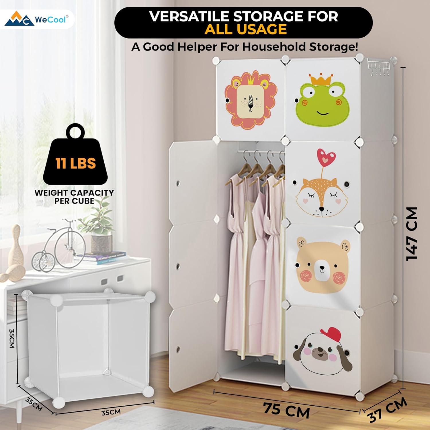 🏆【𝗟𝗮𝗿𝗴𝗲 𝗖𝗹𝗮𝘀𝘀𝗶𝗳𝗶𝗲𝗱 𝗦𝘁𝗼𝗿𝗮𝗴𝗲】The wardrobe for clothes consists of 6 storage cubes and 1 hanging section, perfectly meeting different storage needs. Besides, each panel measures 35 x 35 CM, giving the 8-cube storage organizer ample space to keep toys, books, clothes, blankets, shoes, boxes, etc. It can help children develop a good habit of organization.