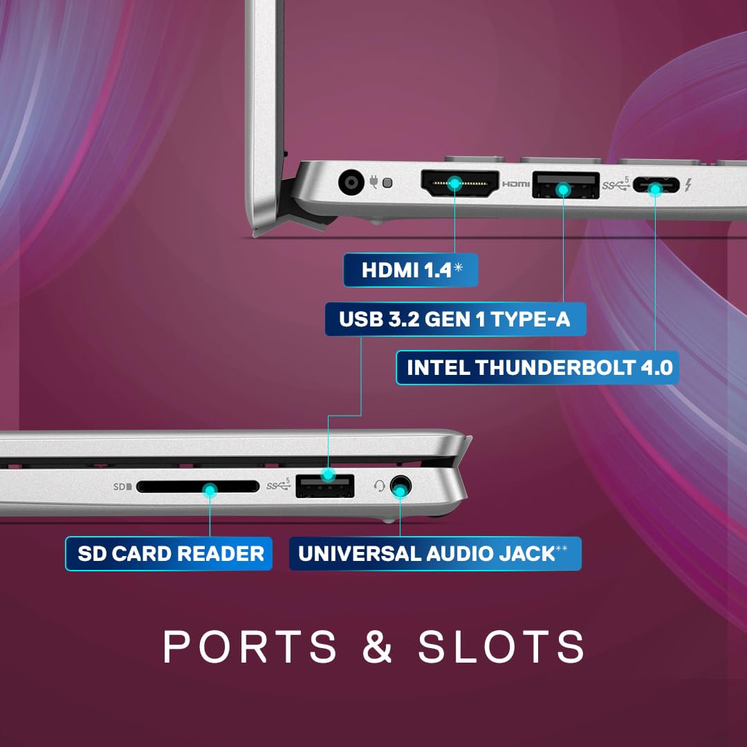 Ports: HDMI 1.4*, (1) Intel Thunderbolt 4.0, (2) USB 3.2 Gen 1 Type-A, SD card reader, (1) Universal Audio Jack**