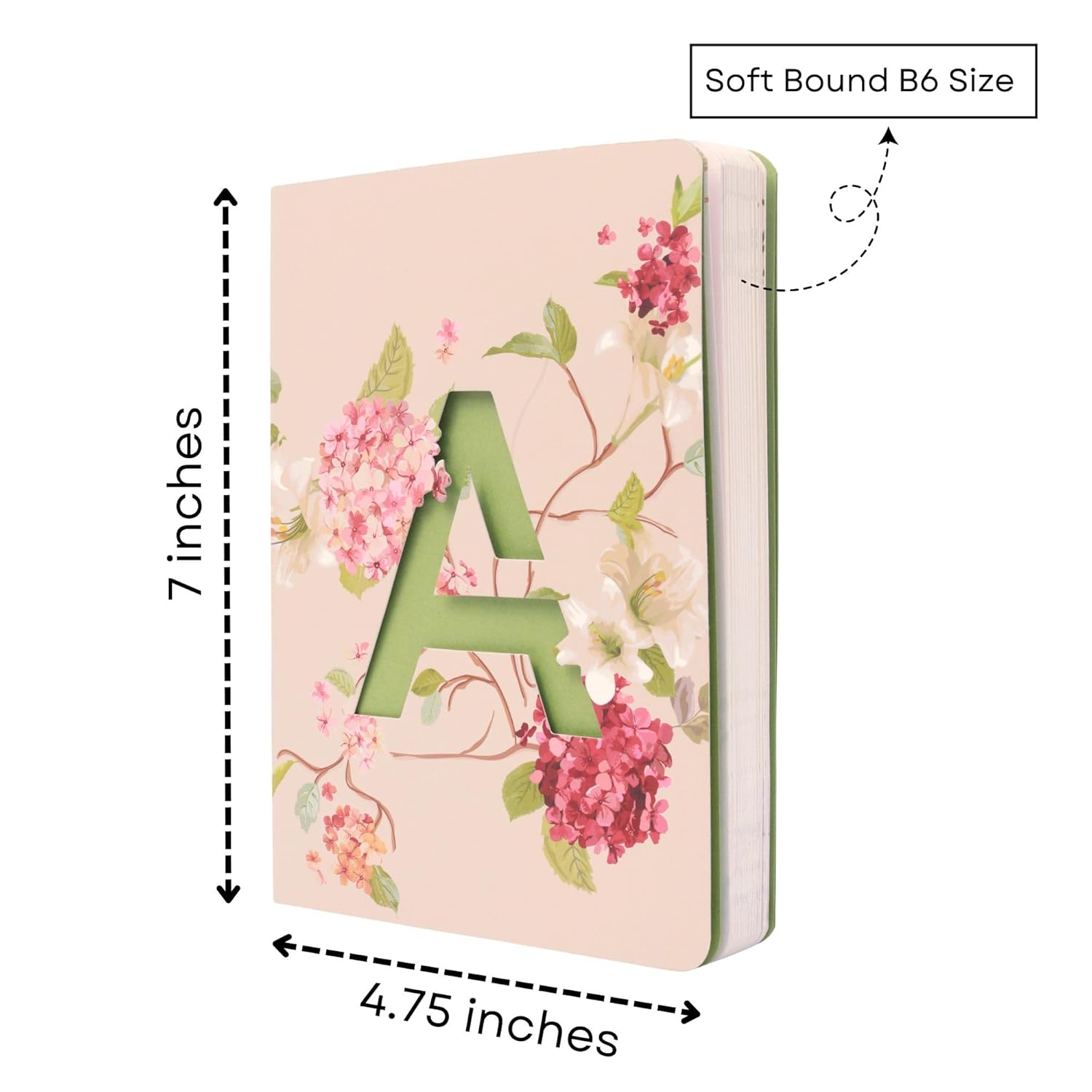 ✅ Cover structure and feel: This B6 soft bound diary comes with a gorgeous cut-out of your initial on the outer cover with a soothing pastel and attractive flowery pattern on it.