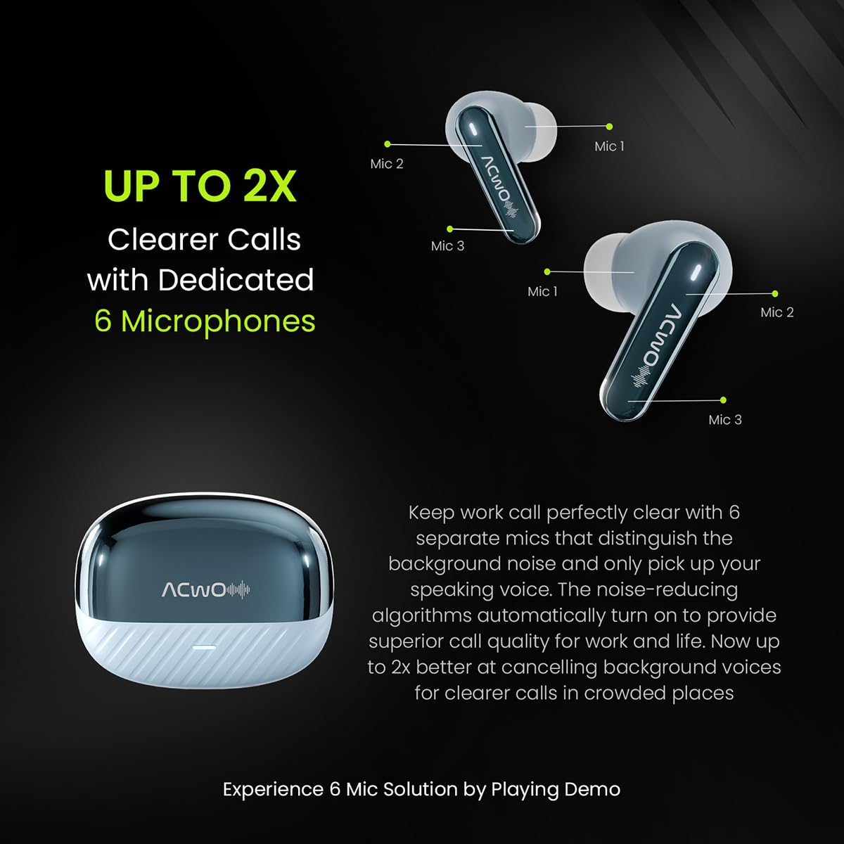 ✅ Hexa Mic Setup with AI-ENC – Call Clarity Reinvented: Six microphones and smart AI-ENC ensure crystal-clear voice pickup in any environment.