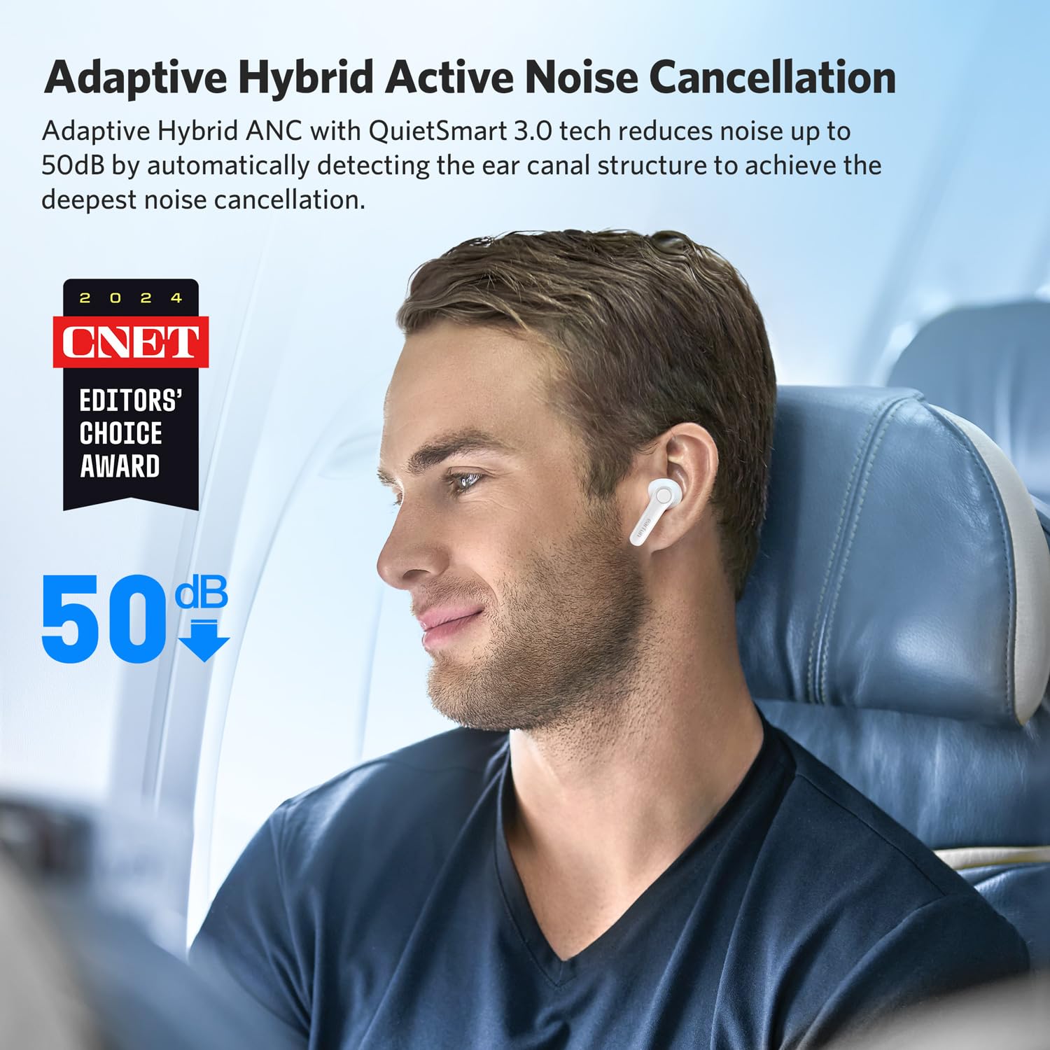 Adaptive Hybrid Active Noise Cancellation up to 50dB. Premium noise canceling powered by adaptive ANC technology and QuietSmart 3.0. EarFun Air Pro 4 noise cancellation earbud automatically detect your unique ear canal shape to achieve maximum noise-canceling performance.
