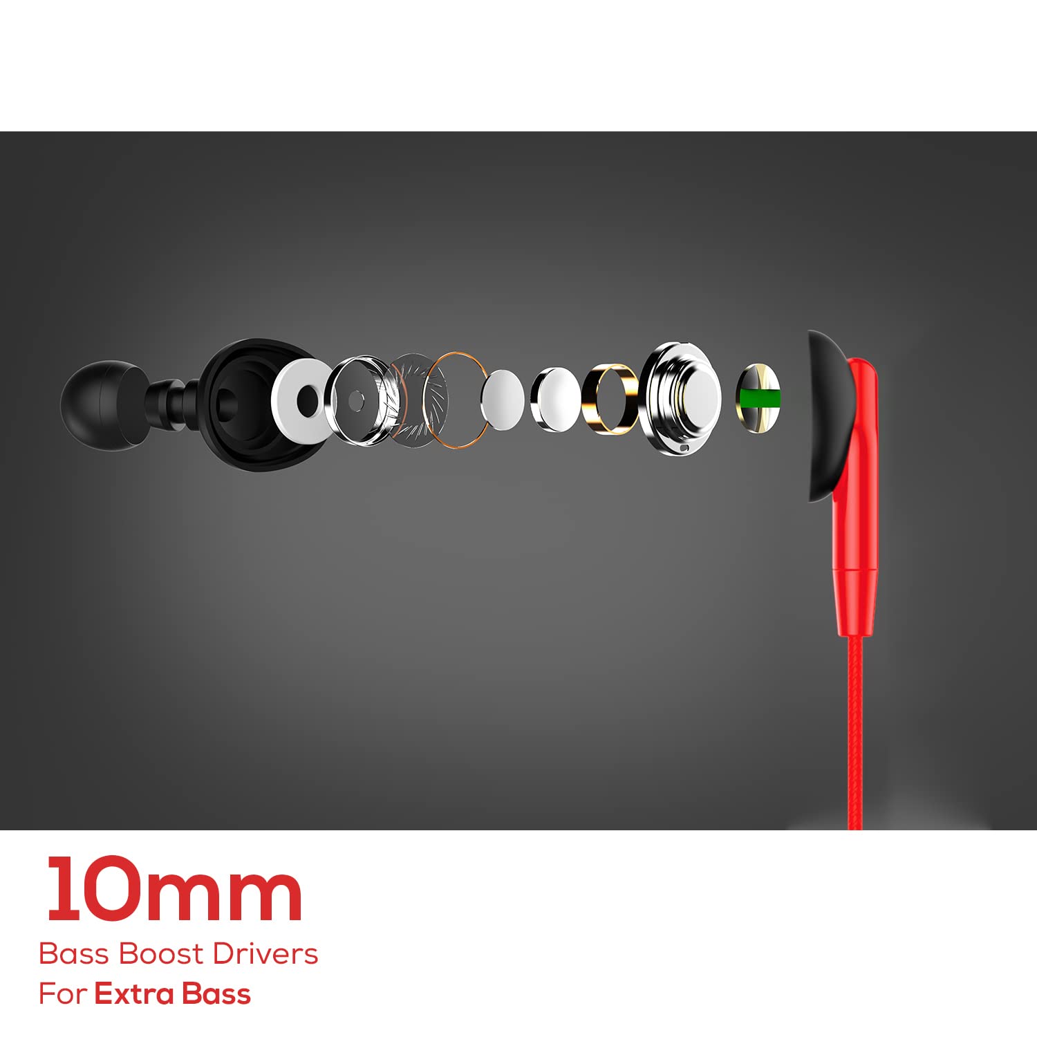 Extra Bass: Boult’s Neodymium technology enables drivers to deliver extra punchy and deep bass with accentuates the warm mids and crystal clear sparky highs. The powerful 10mm dynamic driver with the speaker resistance of 16 ohm enables the earphone to deliver a punchy, rhythmic response to the most demanding tracks.