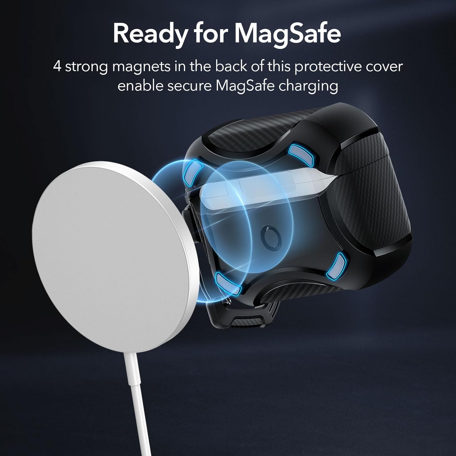MagSafe Ready: strong magnets in the back of the case ensure a secure lock on MagSafe chargers, letting you enjoy tap-and-go wireless charging for your earbuds