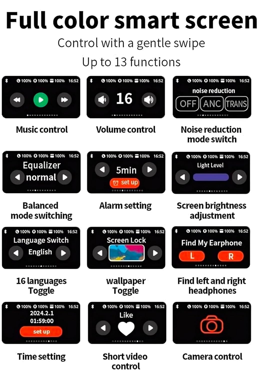 Convenient Type C Charging: Effortless charging meets modern convenience with Type-C charging in our latest screen earbuds. Enjoy quick, hassle-free recharges that keep you plugged into your music without missing a beat
