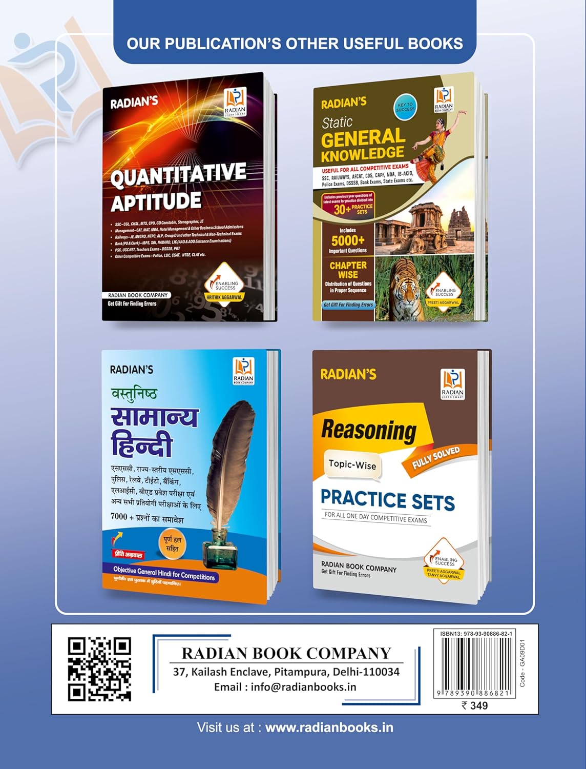 General Awareness Book for Competition in English. Radian’s General Awareness book is useful for all competitive exams: SSC CGL, CPO, CHSL, MTS, GD, UPSSSC-PET, Railways, AFCAT, CDS, CAPF, NDA, IB-ACIO, Police Exams, DSSSB, Bank Exams, State Exams & Other Competitive Exams. About the book and its content: • This book focuses on those aspects of general knowledge that never change and have permanency. • Includes previous years’ questions for practice divided into practice sets. • Includes 5000+ important questions. • In this book the questions are divided chapter-wise and placed in a proper sequence for easy understanding. • Covered complete syllabus of the GK with all previous year questions asked in various exams like SSC, RAILWAYS, AFCAT, CDS, DSSSB, POLICE EXAMS, etc.
