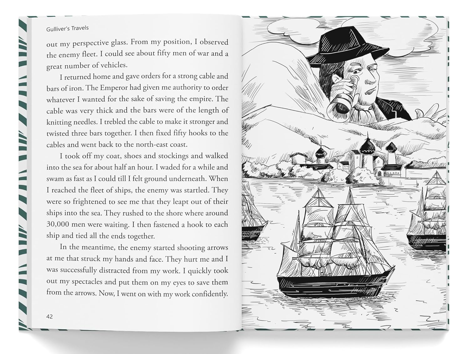 Meet the adventurous and scrappy Lemuel Gulliver, as he travels around the world seeing strange sights and meeting peculiar characters. From tiny 6-inch humans and frightening giants to flying islands and overlord horses, Gulliver sees it all! Despite the universe’s warning signs, Gulliver continues to follow his passion of being at sea. He manages to get himself out of scrapes by learning foreign languages, entertaining strangers, and even fighting an entire kingdom! Journey with Gulliver as he lands himself into trouble in foreign lands, and learns a thing or two about home.