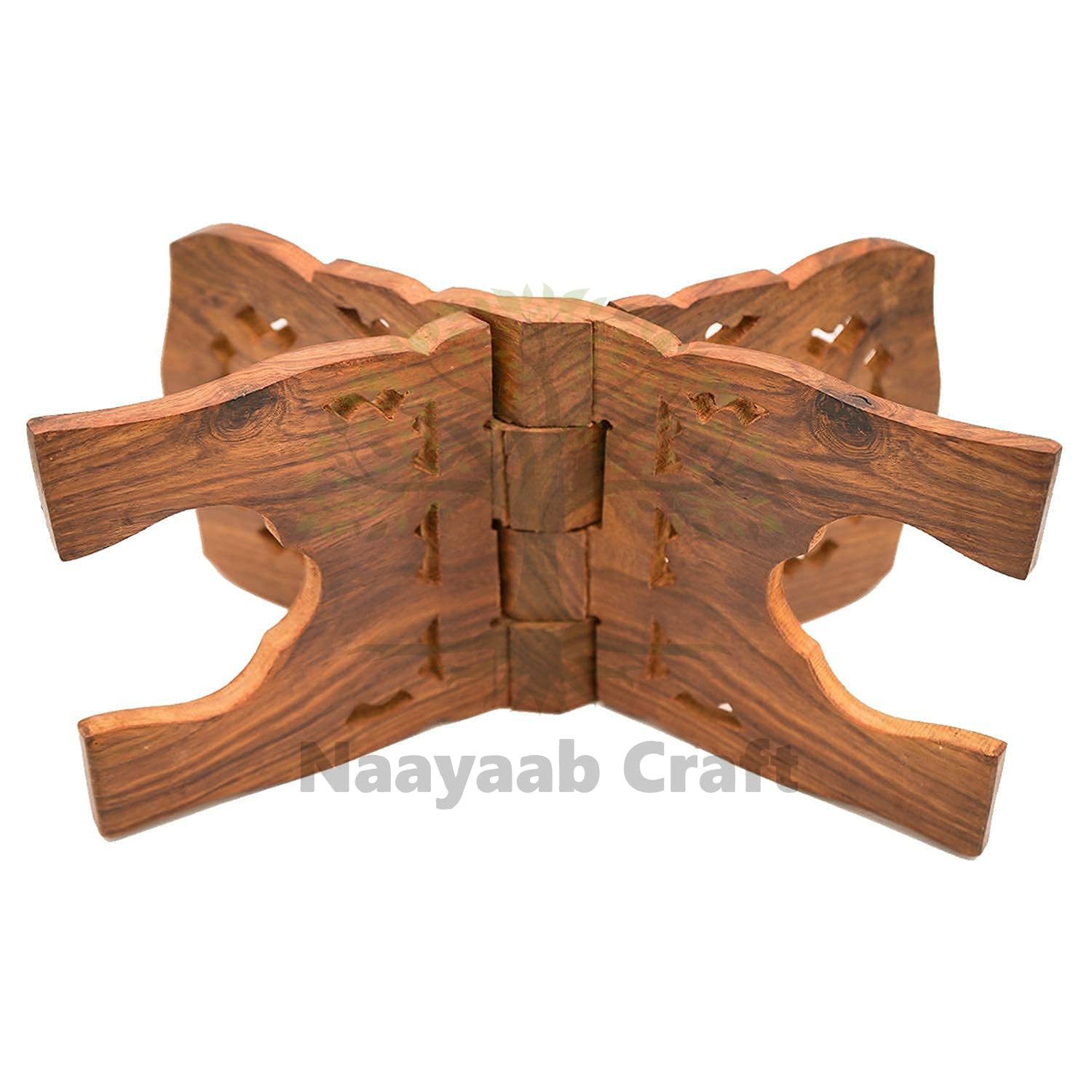 This wooden Quran stand can be folded and kept away when not in use. An added benefit is that due to the elevated platform, you do not need to place the holy books on your lap or floor while you read and your body posture remains upright.
