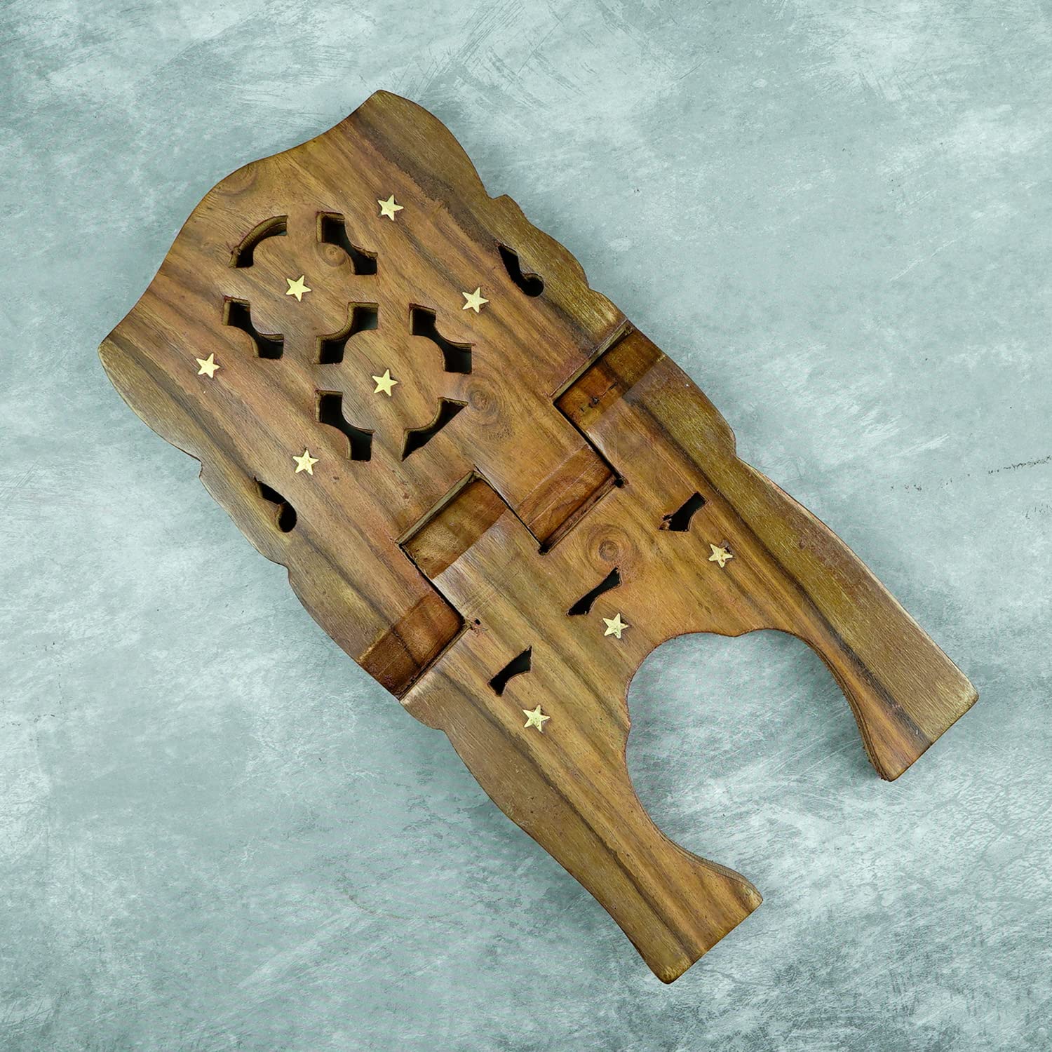 This wooden Book Holder is beautifully handcrafted by skilled rural Indian craftsmen and features an ornate, ethnic design. The books are placed on an elevated platform and rest on a semi-open surface.