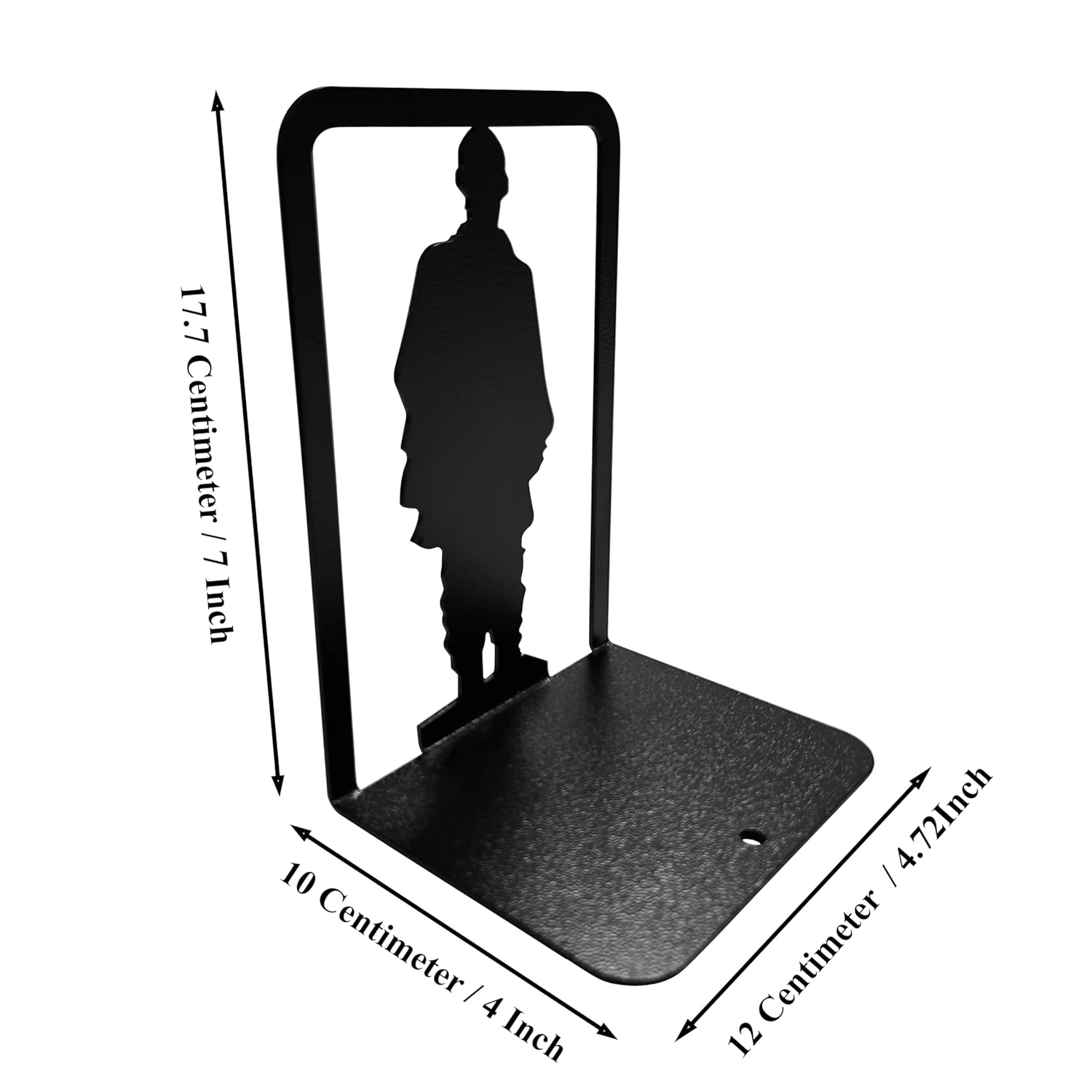 Dimension: 17.7 X 10 X 12 CM (Height X Length X Width ) Per Piece Metal Bookends are laser cut from strong Steel and can hold as many books. The number of books that can be stored depend on the shelf length of your shelf. Made of solid heavyweight steel Non-slip padding on bottom Heavy enough to hold up your reading collection. Finished in Hammered Black . Elevate your bookshelf with our stunning Decorative Bookends, crafted from durable steel and designed to capture attention. Standing at 7 inches tall and measuring 4.72 inches wide by 4 inches deep. The bookends pair weighs enoughs ensuring your books stay securely in place without tipping over. The black powder-coated finish adds a sleek touch, making it a perfect addition to any décor style. To enhance stability, each bookend comes equipped with rubber pads on the bottom, preventing scratches on your surfaces while keeping them firmly anchored. Whether you’re a comic book enthusiast or looking for a unique gift, these decorative bookends are sure to inspire a sense of adventure and romance in any space. Add a touch of heroism to your bookshelf today! Manufactured with Utmost Accuracy and Maintaining International Standard Manufactured from Stainless Steel Provides a Stunning accent for any room in your home