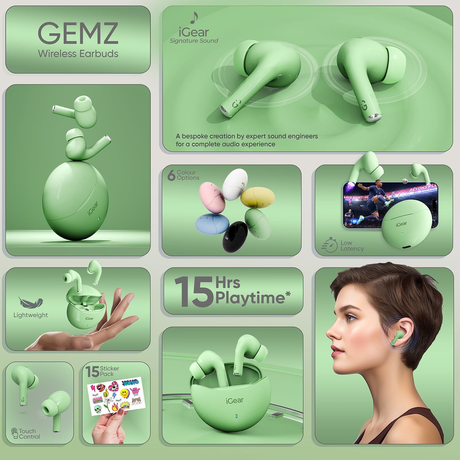 HiFi Bass and iGear Signature Sound: Gemz provides immersive audio with HiFi bass and iGear Sound, delivering clear and precise reproduction of every note and beat.