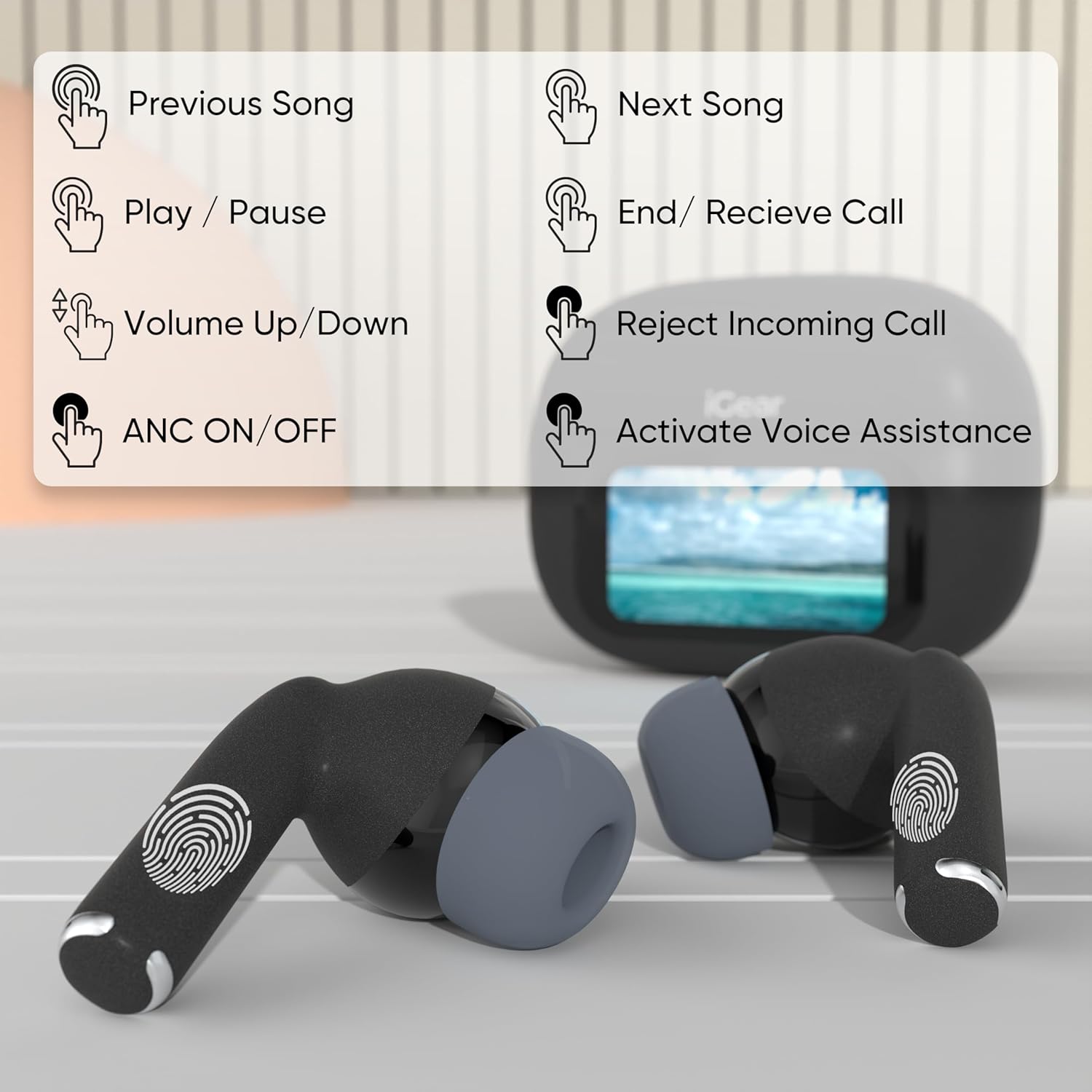 India’s Most Advanced Screen TWS: Experience smart audio like never before. iGear PixelPod comes with a full-touch LCD case that lets you control music, calls, EQ settings, screen brightness, wallpapers, flashlight, and more.