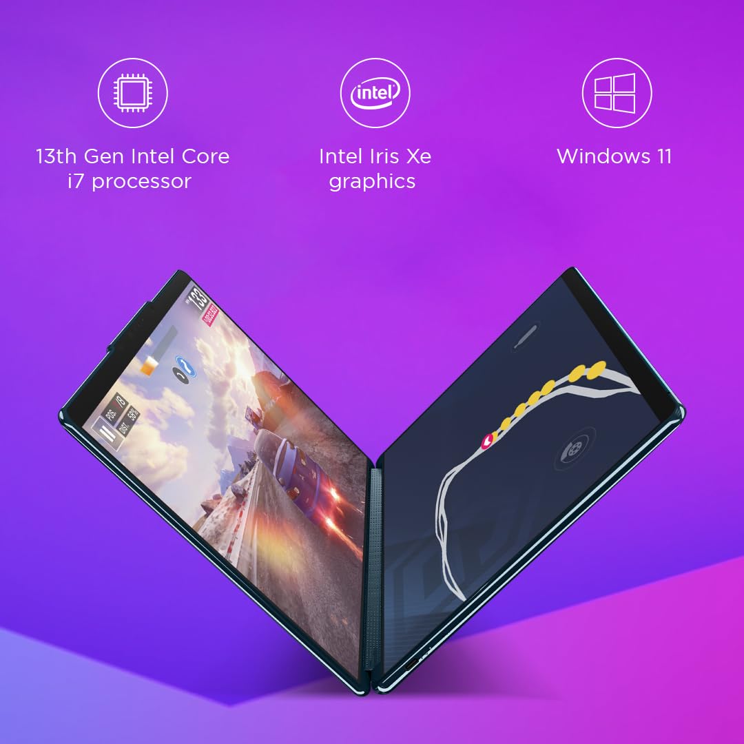 Design: Dual Screen | Touchscreen Anti-Fingerprint Glass | 1.59 cm Thin and 1.34 kg Light