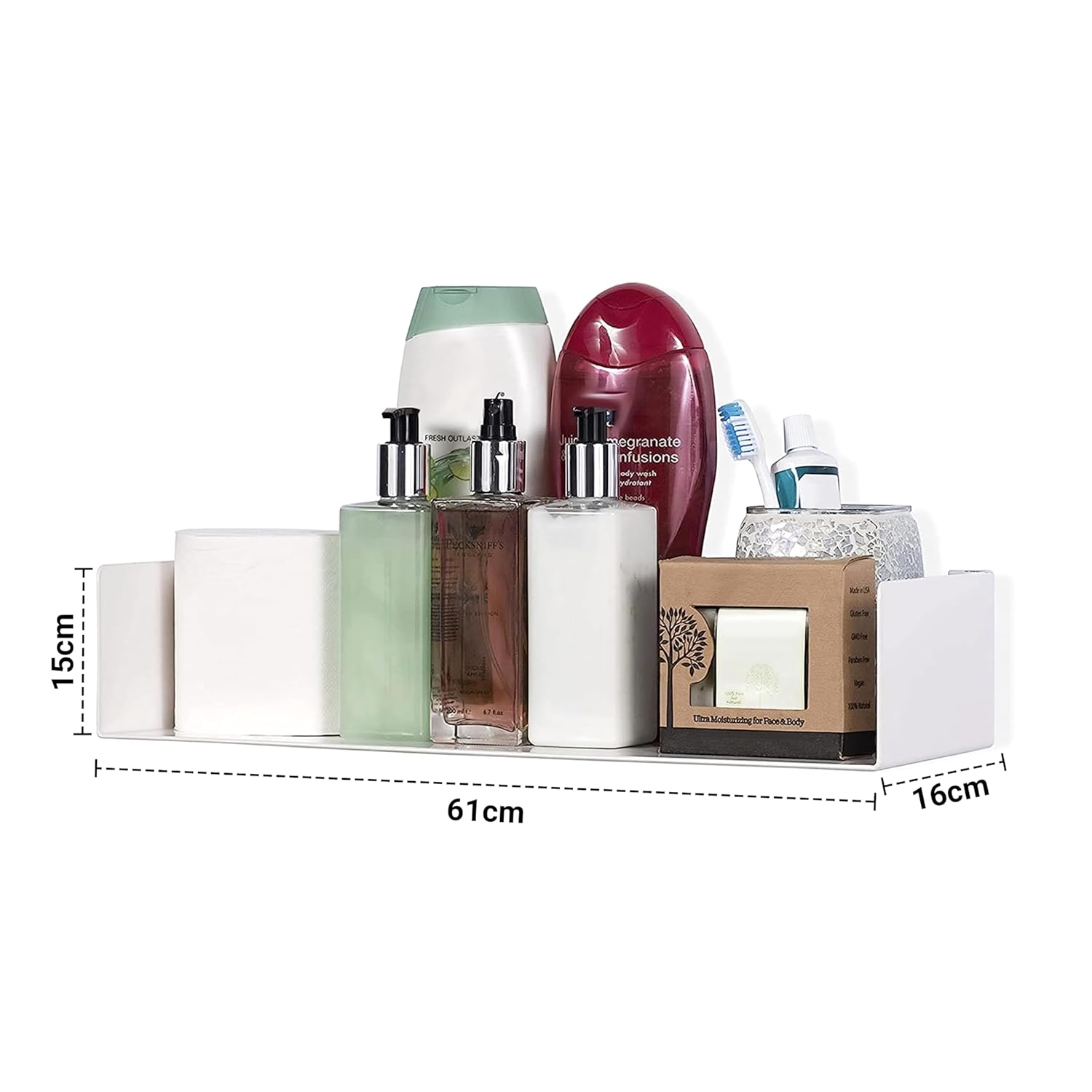 SAVE SPACER – L=15.5cm, B=60cm, H=15cm. U-shaped shelves are a versatile and stylish solution for storing and organizing small items or clearing away clutter in any room of your home. Whether it’s your bedroom, bathroom, kitchen, or living space, these shelves provide an elegant way to keep your essentials within reach while freeing up valuable counter space.