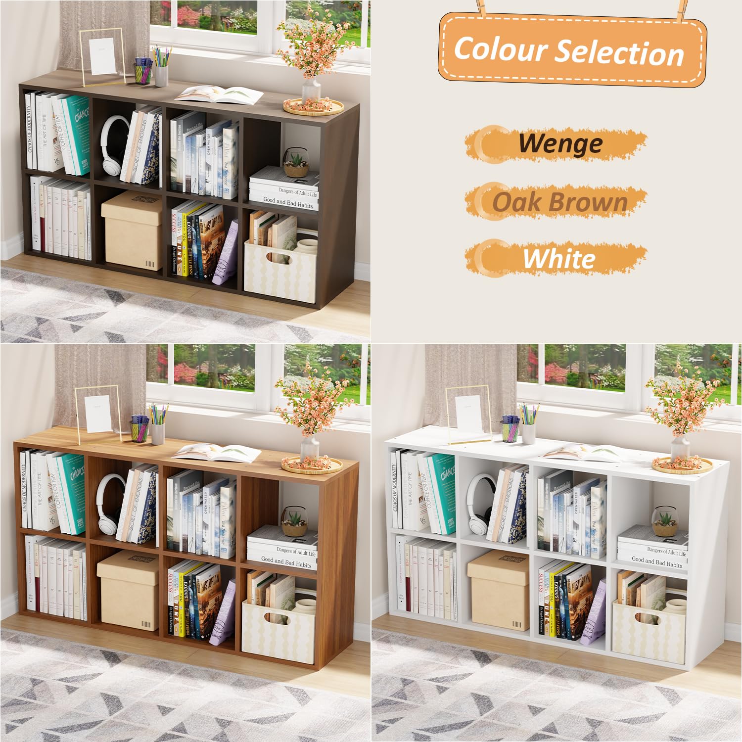The 8 Shelf bookcase made up of Engineered Wood , a new assembly method is adopted to make the bookcase more stable and firm.8 Open Cubes allow you to show what you want.