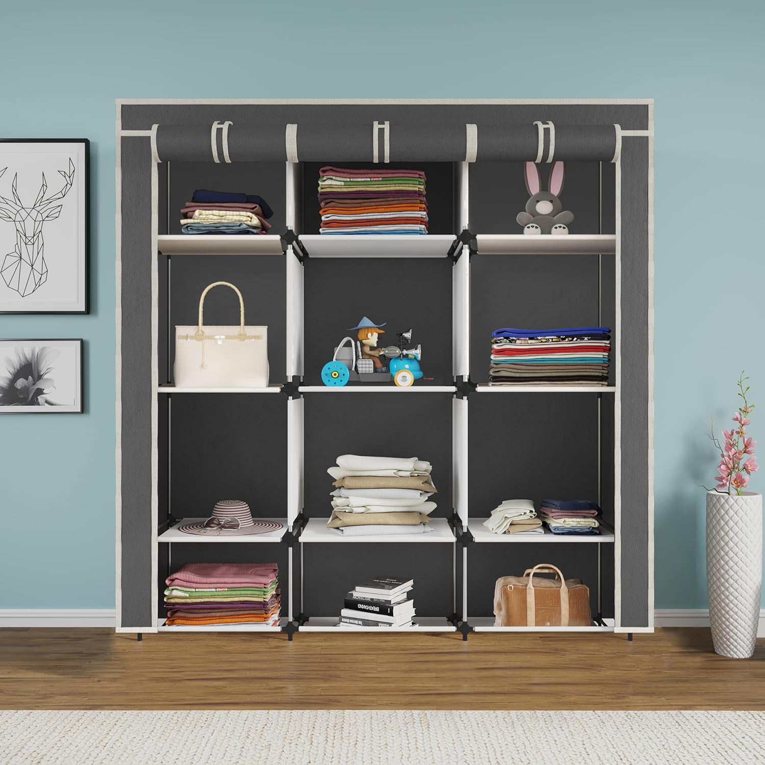 VARIOUS STORAGE SPACE: This Wardrobe features plenty space inside to divide it into different section for classify storage, Side Shelves stop the clothes falling down from the gaps.