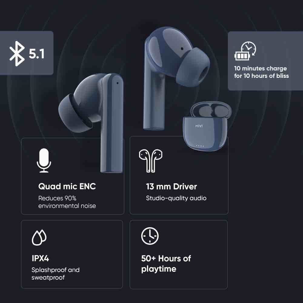 Powerful Bass & Authentic Sound: The Mivi DuoPods A550 earbuds have custom-tuned EQ which provides you with a rich, deep, and powerful bass that won’t miss a beat. It comes with 13mm electro-dynamic bass drivers provide studio-quality audio performance for the pure authentic sound you want.