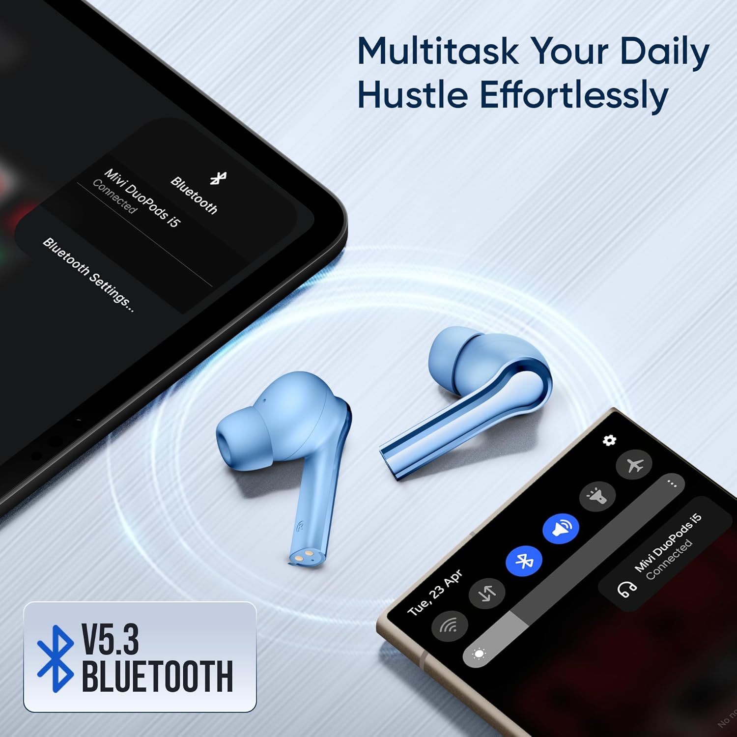 Connect your Mivi DuoPods i5 ear bud with two devices at the same time and switch seamlessly amongst them. Use your phone and laptop or tablet without having to disconnect from the other device. With DuoPods i5, multitask like a boss.
