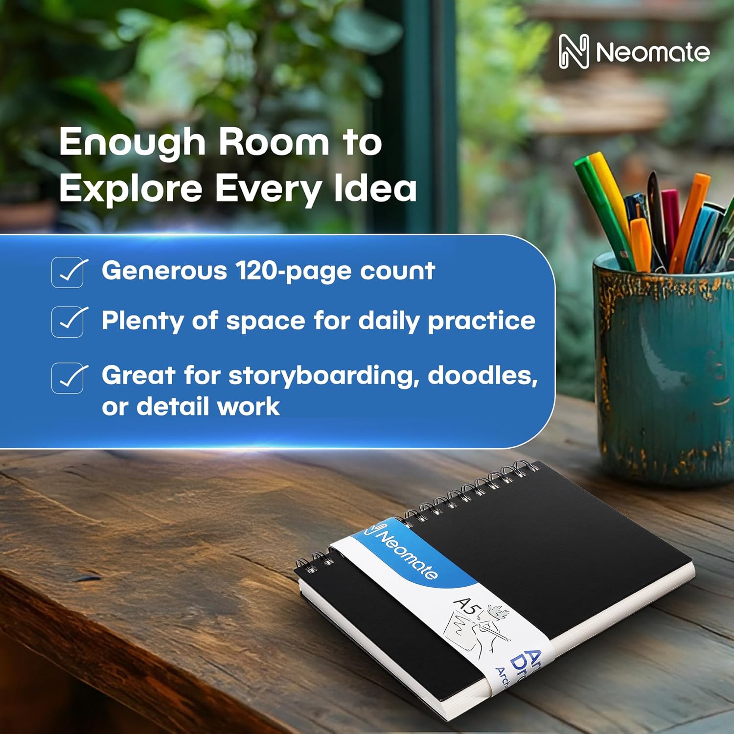 Portable A5 Size for On-the-Go Creativity: Compact and convenient at 5.8 x 8.3 inches, this sketchbook is ideal for creative minds to carry anywhere—from classrooms to coffee shops.