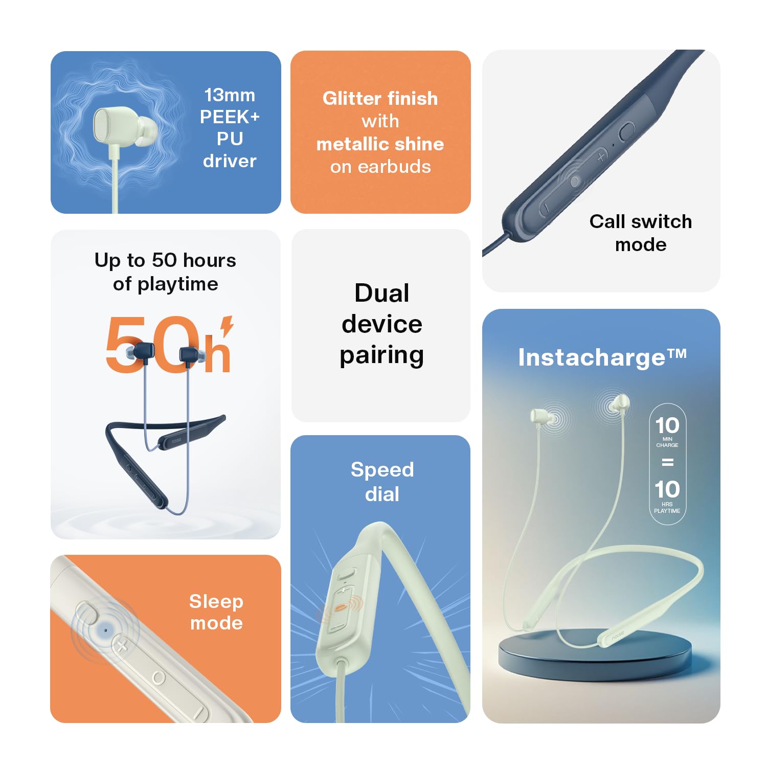 Up to 50 Hours of Playtime: Enjoy extended listening with 50 hours of battery life and Instacharge for 10 hours in just 10 minutes.