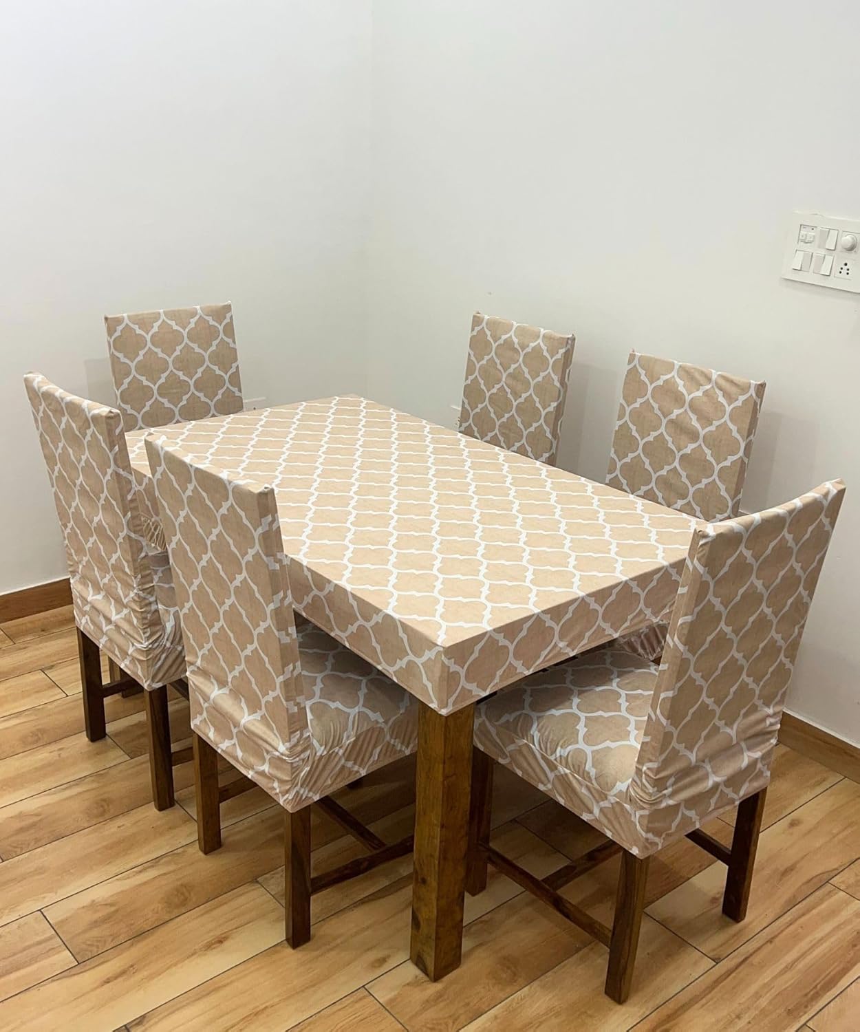Dining Table and Chair Covers Combo for Dining Area- Stretchable Slipcovers for Decorative Seat Protector and Stretchable Table Cover too with elastic. ohello dining chair covers fit for most of parsons chair, they are made of super stretchable material. They will let your old chairs into brand new one and more beautiful and they also can prevent your chair from kids scribble or pets scratch and bite. Also the table covers provide a rich look to your table and protects its from stains. Easy to cleaning and wash, machine washable. Features: · Made of durable and super stretch Polycotton lycra fabric with high-quality Lycra, softly rich and luxurious. All-around elastic provides a clean, sleek look that goes on easily and stays in place. Suitable for all seasons · Fits most armless chairs parsons and dining chairs, leather, upholstered or non-upholstered · Freshen up your chairs and table , keep them clean and protect your furniture from dust, spills, stains, wear, fading and tear, prolong durability · Easy to Install: One minute, it will change your old furniture to be fresh and modern style. These dining chair covers or elastic chair cover set of 4,6,8 or 2 pcs with Table Cover combo can be used for kitchen, bedroom, living room decoration, restaurant, cafe, studio, office or hotel, meeting, party, Christmas, wedding banquet, celebration, ceremony, etc. Measure Guide To make sure getting the perfect fitting, please measure your dining chairs before ordering Fit chair back width: 14-19 inches, chair back height: 19-23 inches and chair seat width and depth 14-19 inches and thickness 1-4 inches. 6 seater Table length : 58-66 inches (147-167 cm), Table Width : 34-38 inches (86.3-96.5 cm). 4 seater Table length: 45-50 inches (114-127 cm), Table Width: 28-33 inches (71-83.5 cm). Please measure your Table and Chairs before purchasing to ensure the best fit.