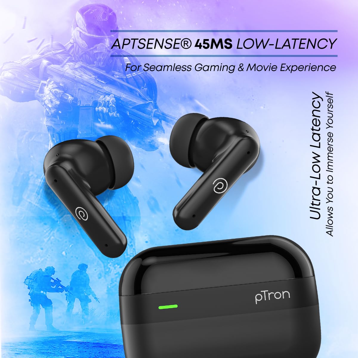 Large 13mm Dynamic Drivers for Immersive Stereo Sound | AptSense 45ms Low-Latency for Seamless Gaming & Movie Experience | Simply Touch the Earbuds to Swap Modes – ANC On/Off, Game & Movie modes