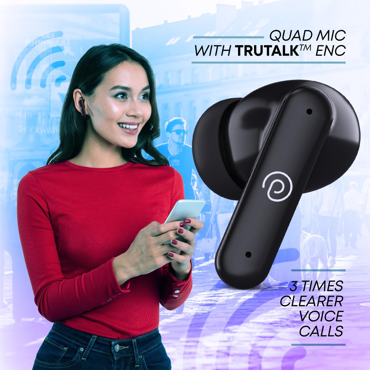 Hybrid ANC Earbuds: Active Noise Cancellation cancels background noise up to 28dB for an immersive listening experience | 60 Hours Combined Playtime with the Vibrant & Compact Charging Case; 4 HD Microphones & ENC for Clearer Calls: Built-in HD mics & TruTalk Environmental Noise Cancellation technology ensures smooth delivery of your voice via calls – be heard loud & clear.