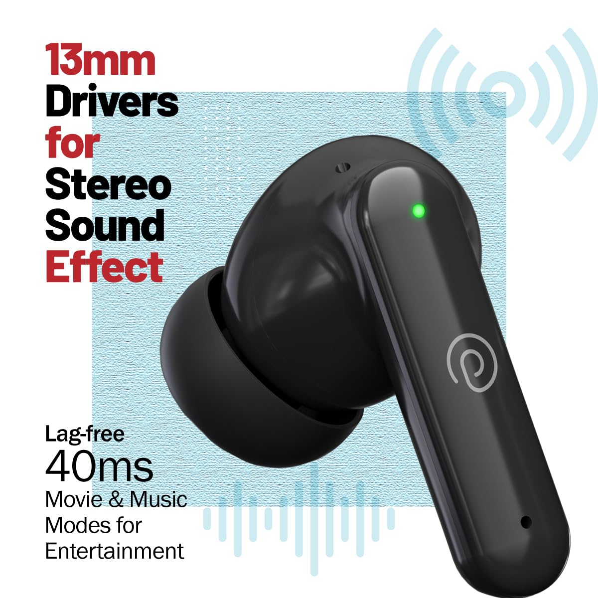 Quad HD Mics & TruTalk ENC tech Filters out Background Noises, Enhancing your Voice Clarity on Calls | 40Hrs Combined Playback Time with Charging Case for Extended Usage.