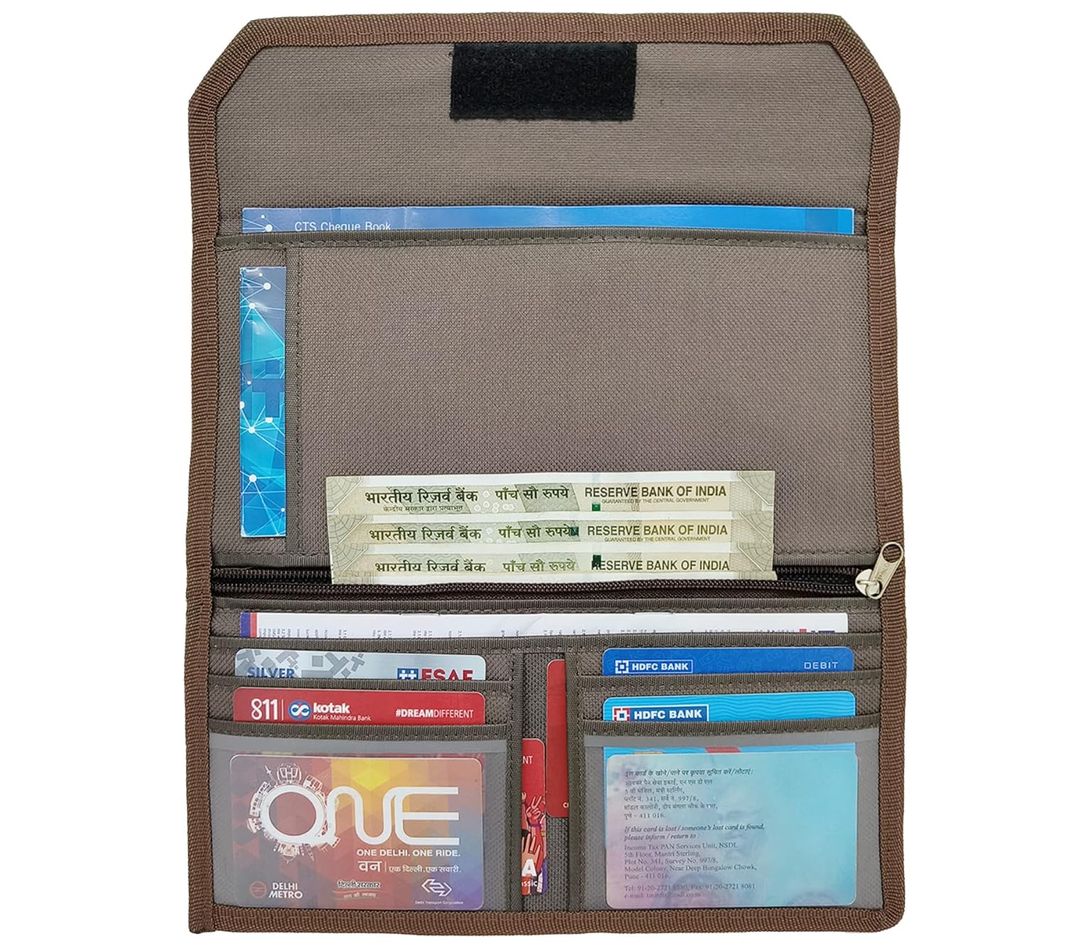 Multiple 10 Pockets: 4 Pockets (2 Compartments For Credit & Debit Cards & 2 Transparent Pockets For ID Cards), 1 Pocket For Bank Documents, 1 Zipper Pocket For Cash, 1 Pocket For Cheque Book, 1 Long Pocket For to Keep Other Bank Documents.