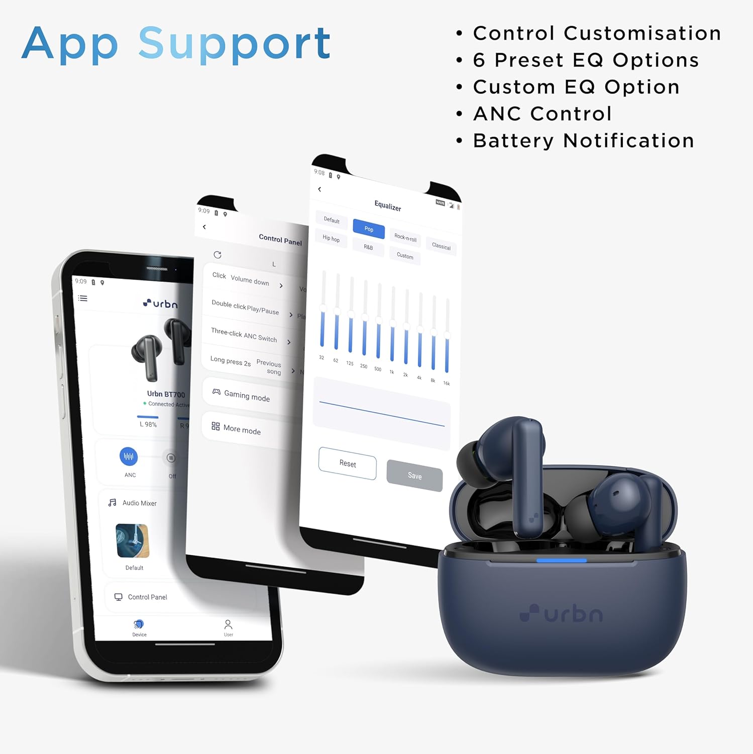 (Refurbished) URBN Beat 700 ANC Bluetooth *Newly Launched* True Wireless (TWS) in Earbuds with 12MM Driver, Hybrid ENC Quad Mic, 60H Playtime, Gaming Mode, IPX5, Touch Controls & App Support (Blue)