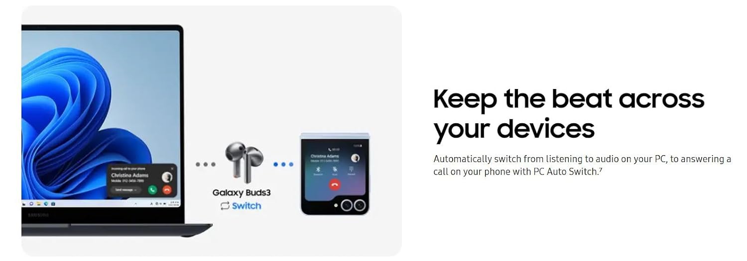 Compatibility & Battery Life: The Samsung Galaxy Buds 3 are compatible with Android devices running Android 8.0 or later with at least 1.5GB RAM. They provide 6-8 hours of playback depending on Active Noise Cancellation (ANC) use, and up to 12 hours with the charging case. Case can charged wireless or wired.