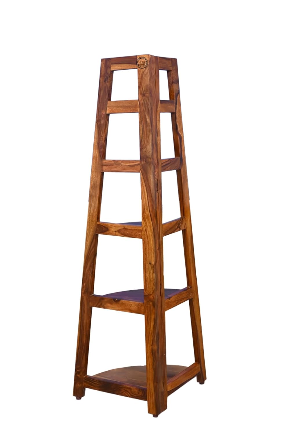 Primary Material: Sheesham Wood | Secondary Material: MDF (Is Only Applicable For Those Products Which Have Drawers) | Product Name: Wooden Corner Ladder Bookcase Shelf For Living Room.Assembly Or Installation Is Based On Diy (Do It Yourself) Basis. Every Product Goes Through A Tough Quality Check To Ensure That We Can Serve Our Best Way. Only Made In India Products. Designed And Manufactured By SHRI MINTU’S ART. The Trusted Source For Stylish Furniture. For Every Taste And Budget.Installation Type: Freestanding; Item Shape: Conical