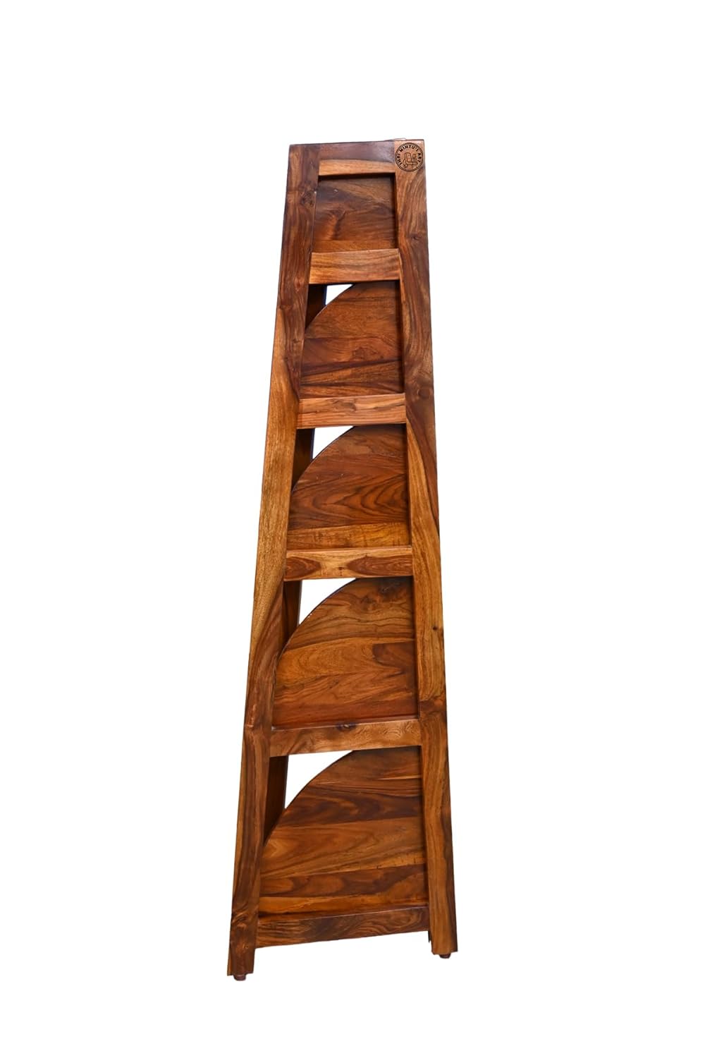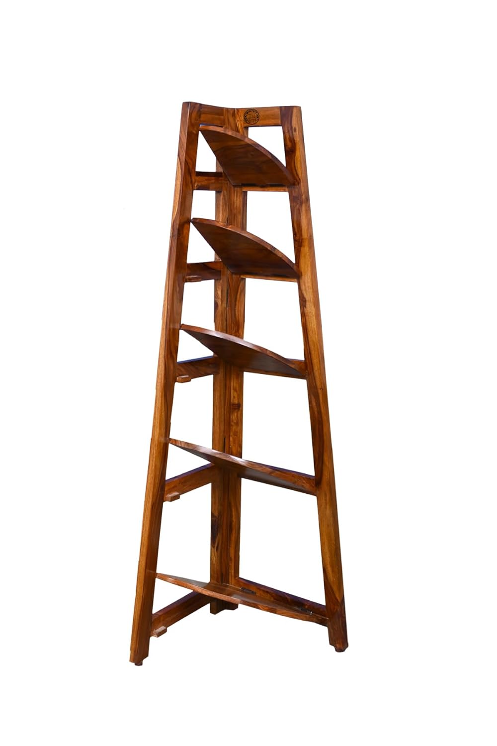 Primary Material: Sheesham Wood | Secondary Material: MDF (Is Only Applicable For Those Products Which Have Drawers) | Product Name: Wooden Corner Ladder Bookcase Shelf For Living Room.Assembly Or Installation Is Based On Diy (Do It Yourself) Basis. Every Product Goes Through A Tough Quality Check To Ensure That We Can Serve Our Best Way. Only Made In India Products. Designed And Manufactured By SHRI MINTU’S ART. The Trusted Source For Stylish Furniture. For Every Taste And Budget.Installation Type: Freestanding; Item Shape: Conical