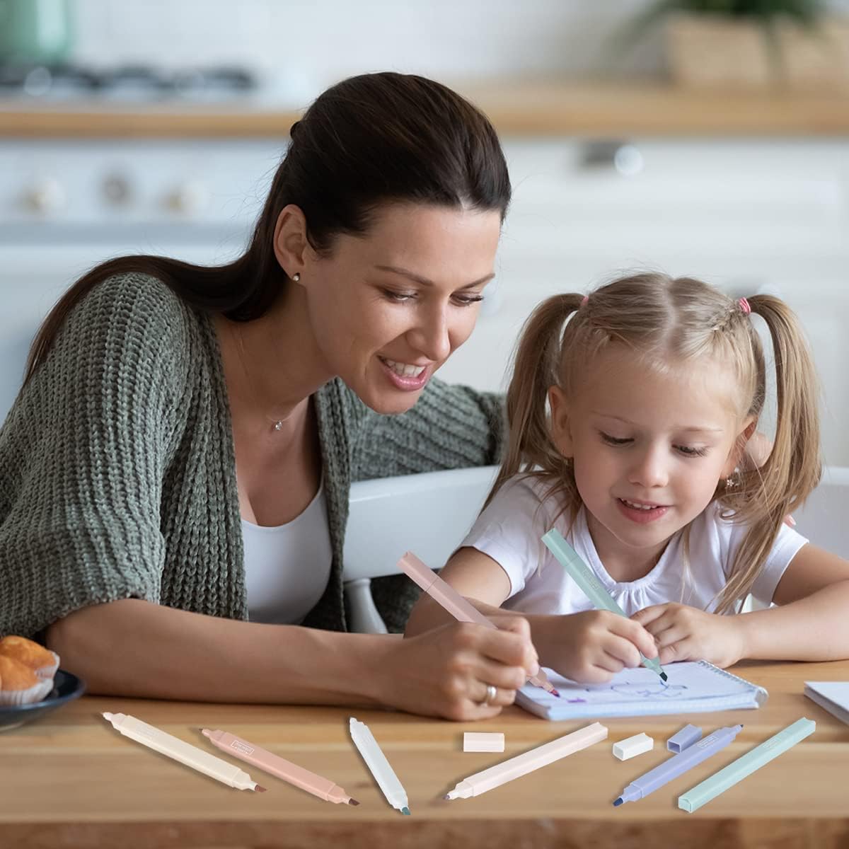 SOFT COLOUR MARKER PENS SET: the aesthetic highlighter pen set consists of 12 mild-coloured colours, the colour is soft, comfortable to see without glare, can protect the eyes well from irritation and does not distract your attention, making it easier for you to make notes in important places. Warm Tips If you feel that the color of the painting is too bright, you can paint it over several times to make the color darker.