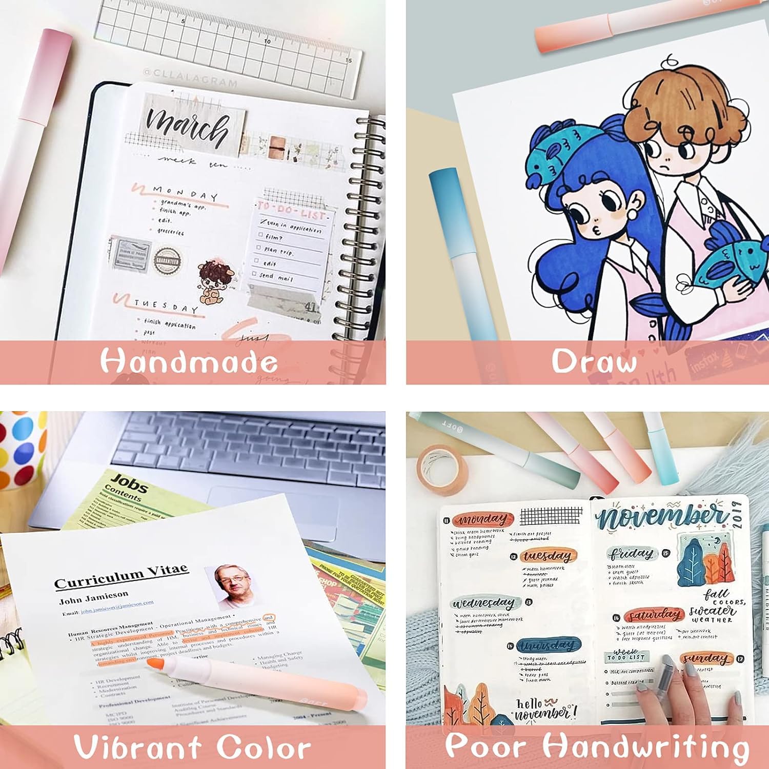 🖊 Portable highlighter : The marker pen set is cute and lightweight, space-saving, small and compact and easy to carry. Convenient for you to put it in a bag and take it with you when you are on the go, work or study, mark, draw, journal, take notes, mark, doodle, color, etc.