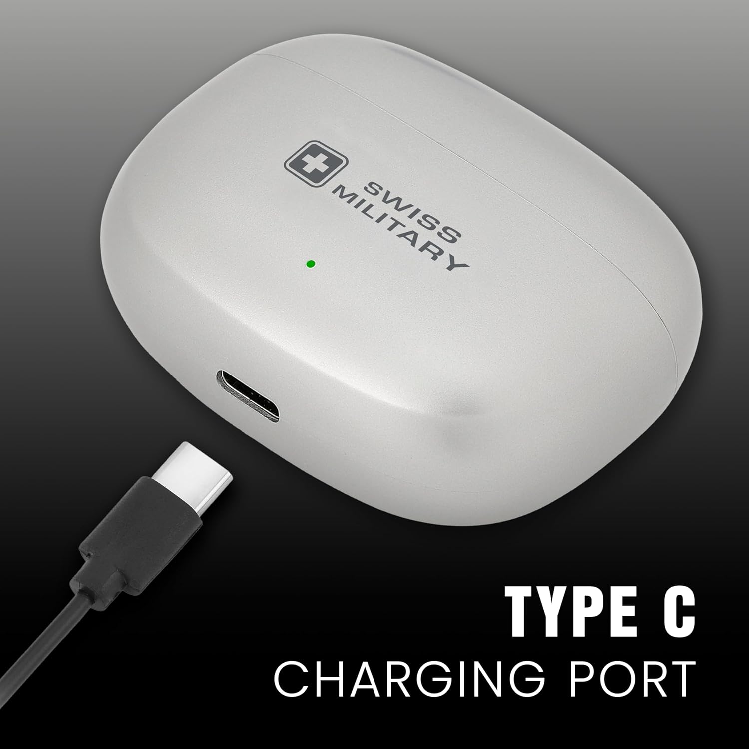 SWISS MILITARY POPPODS ANC Wireless Earbuds, 60H Battery, Noise Cancellation, Bluetooth 5.3, Dual Device Pairing, Touch & Voice Control, 13mm Drivers, Type-C Charging, Game & Transparency Modes