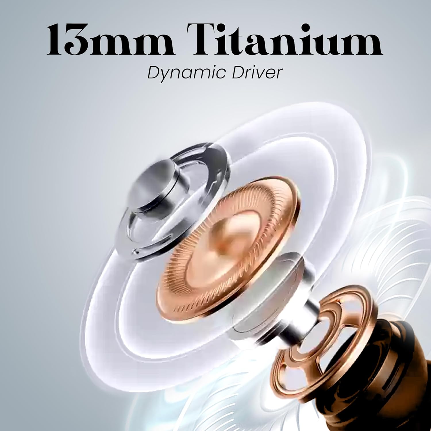🎧 13mm Titanium Dynamic Drivers – Experience powerful bass, balanced mids, and clear highs with high-performance titanium-coated drivers. Ideal for all music genres, these drivers provide a well-rounded and immersive audio experience.