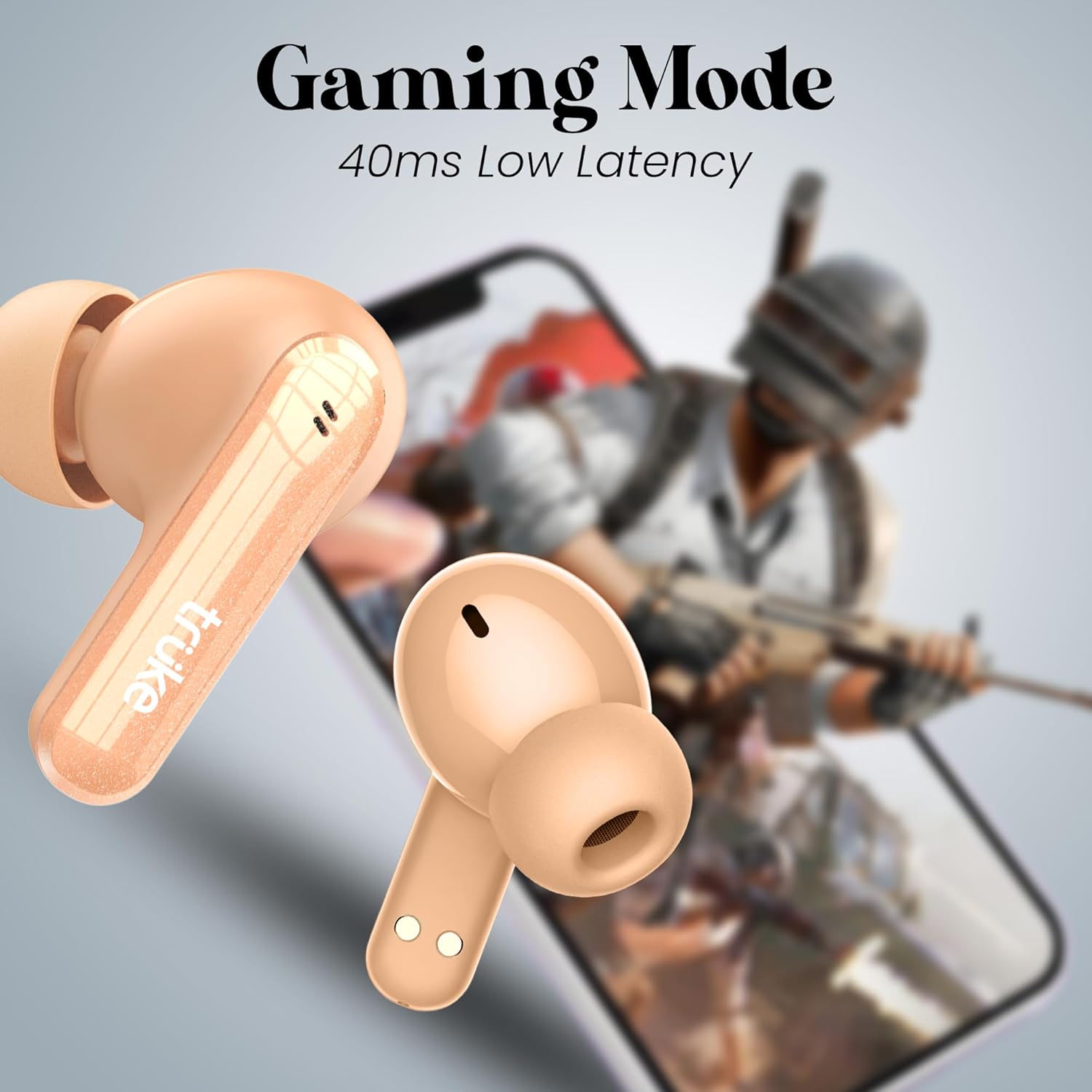 truke New Launch Buds Echo True Wireless in Ear Earbuds with 24-bit Spatial Audio, 13mm Titanium Driver, Dual Pairing Ear Buds, 40ms Latency, 70H Battery Fast Charge TWS, Quad-Mic ENC, BT 5.4(Orange)