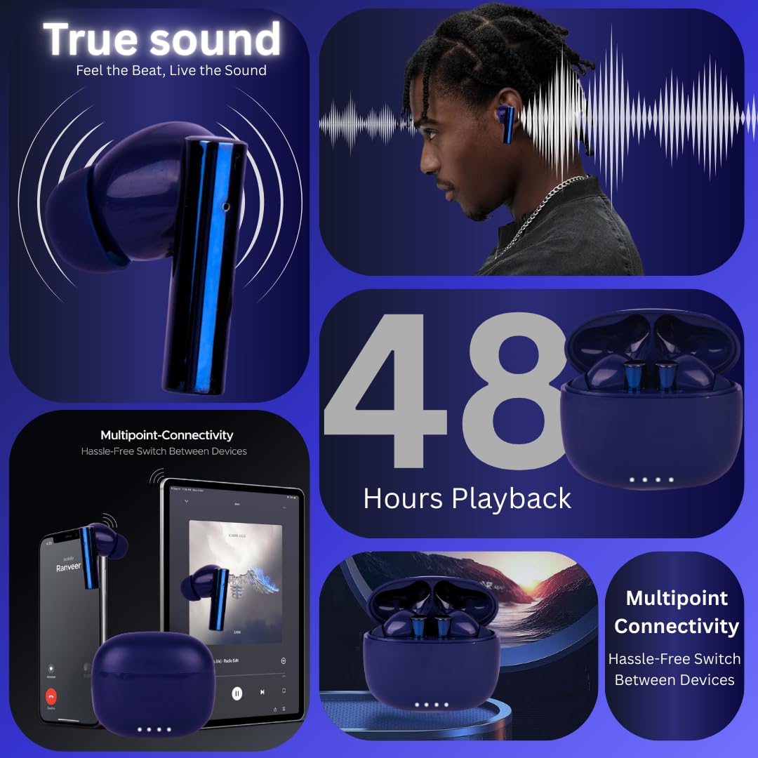 Enjoy music, calls, and entertainment without worrying about running out of power. With an impressive 48 hours of total playtime, these earbuds are designed to keep up with your lifestyle—whether it’s long commutes, back-to-back meetings, or weekend getaways. The power-efficient battery delivers hours of continuous listening on a single charge, while the Type-C fast charging case ensures you’re always ready to go. Just a few minutes of charging gives hours of playback, so your music never skips a beat. Stay connected, stay entertained, and experience freedom without limits.