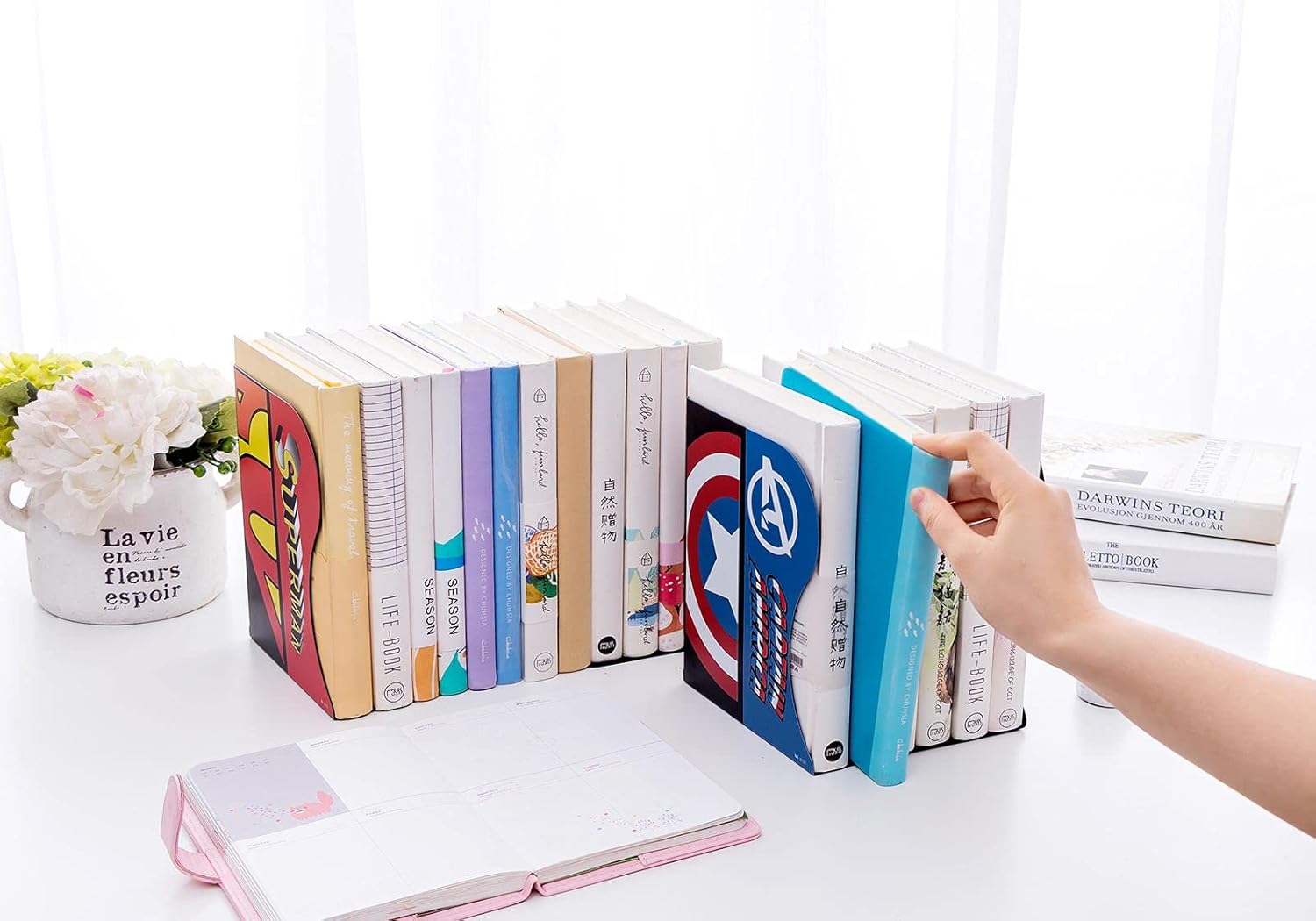 Space Save– This bookends takes less space than traditional bookends. Perfect for storing books away neatly on a desk or shelf.