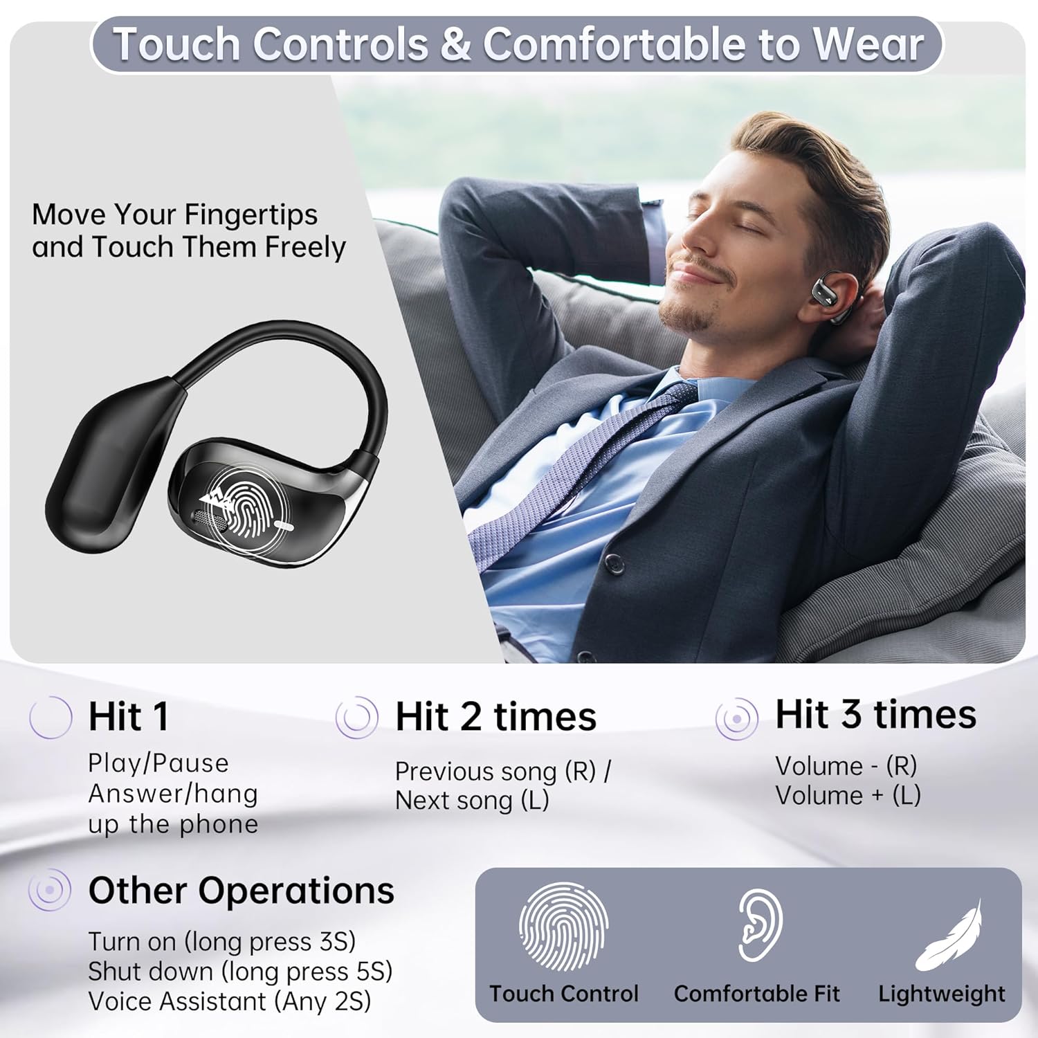 Customers find these earbuds comfortable with their open-ear design, with one customer noting they can wear them for hours without ear pain. The sound quality receives positive feedback, with one customer mentioning their voice is clear during video calls, and the battery life is excellent. They appreciate the value for money, perfect fit, and connection speed, with one noting the earbuds connect instantly when removed.