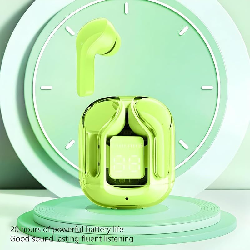 Wireless Earbuds with LED Display, Digital Battery Indicator, Neon Green