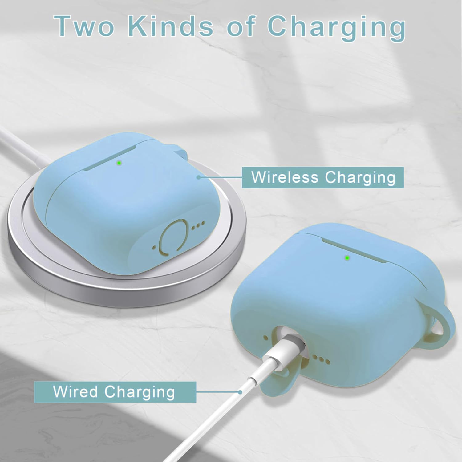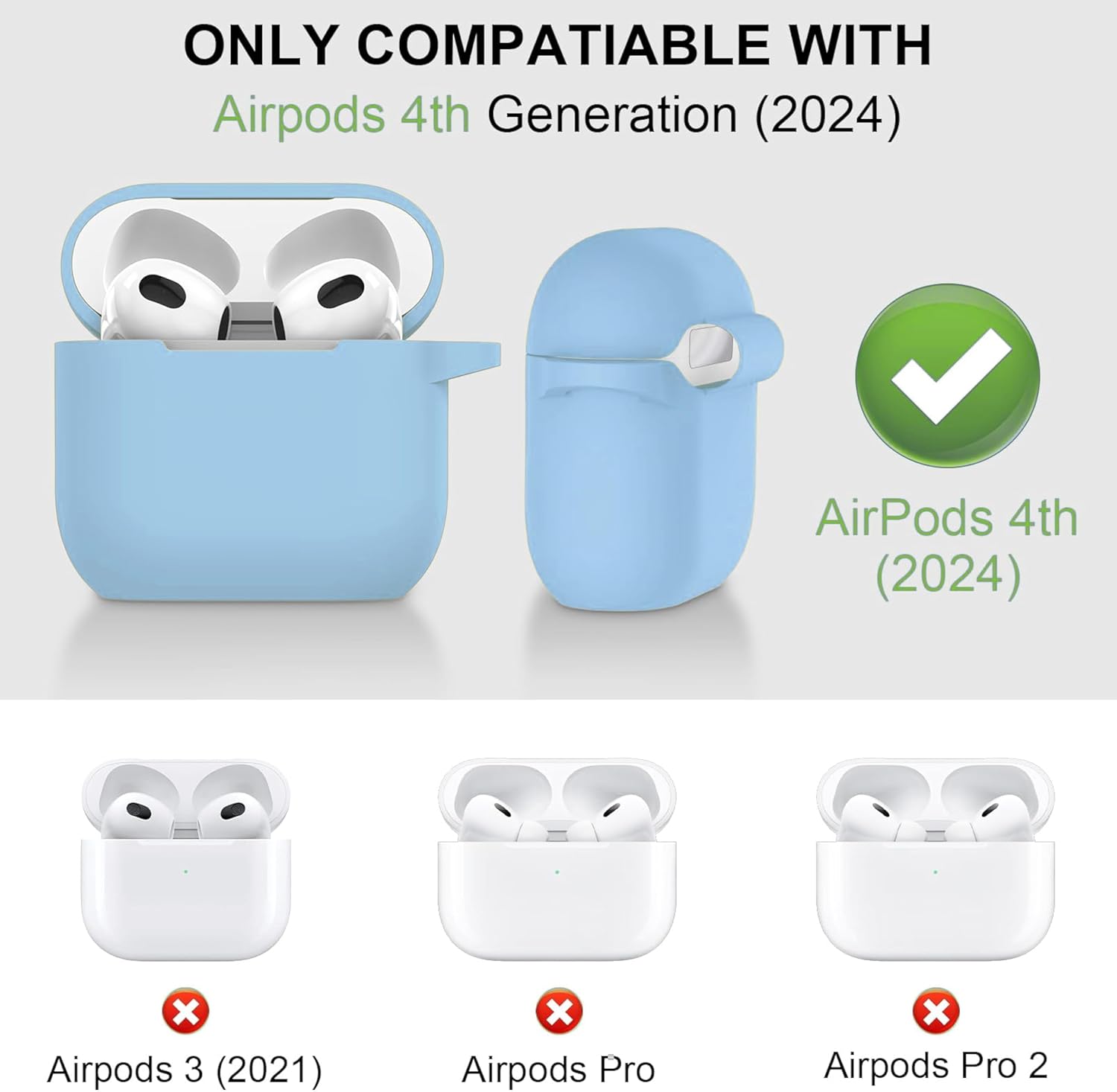 COMPATIBLE WITH APPLE AIRPODS 4 PREMIUM SILICONE MATERIAL Perfect with Charging – The precise cutouts allows you to charge your earphones without removing the cover. Front LED keeps your AirPods 4 case’s status light visible. Never Get Lost – Each case is equipped with a metal carabiner clip, convenient to attach the pouches to a handbag or backpack.