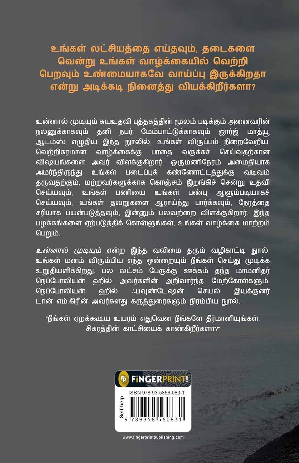 Originally written in English, this book has been translated into Tamil to reach a wider audience. The book is designed to help readers overcome self-doubt and achieve their goals through positive thinking and action. It provides practical advice and strategies for personal and professional success. You Can is a powerful guide to unlocking your potential and living a fulfilling life, and the Tamil translation makes this valuable resource accessible to Tamil-speaking readers.