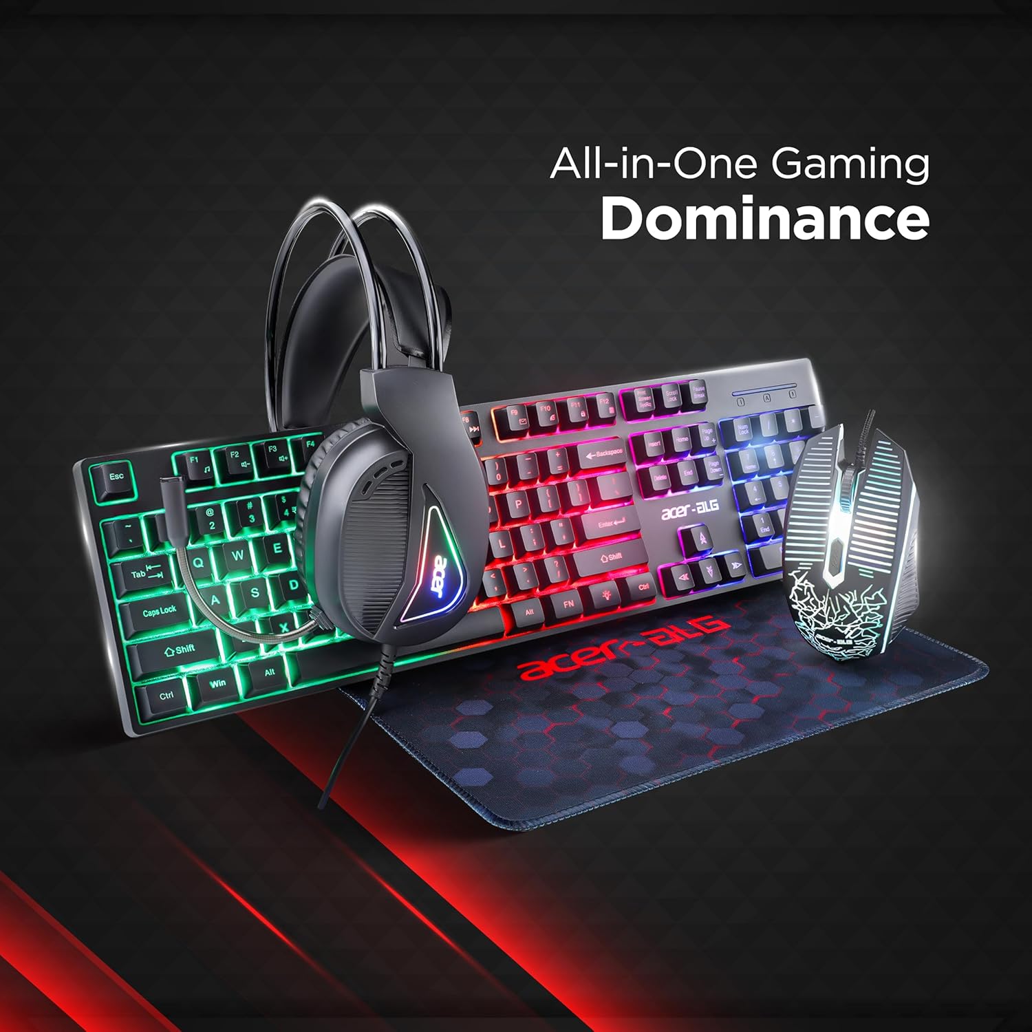 Each component of the combo is designed to work in perfect harmony, ensuring smooth and responsive control that gives you the competitive edge. Whether you’re navigating intense battles, executing precise movements, or immersing yourself in rich, dynamic soundscapes, the ALG 4-in-1 Gaming Combo ensures every action feels effortless and every detail comes to life.