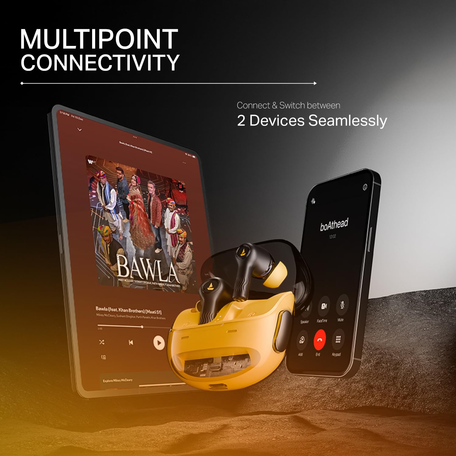 Multipoint Connectivity: Bid goodbye to hassles while switching between two devices. Watch the latest OTT series on your tablet without missing incoming calls on your phone.