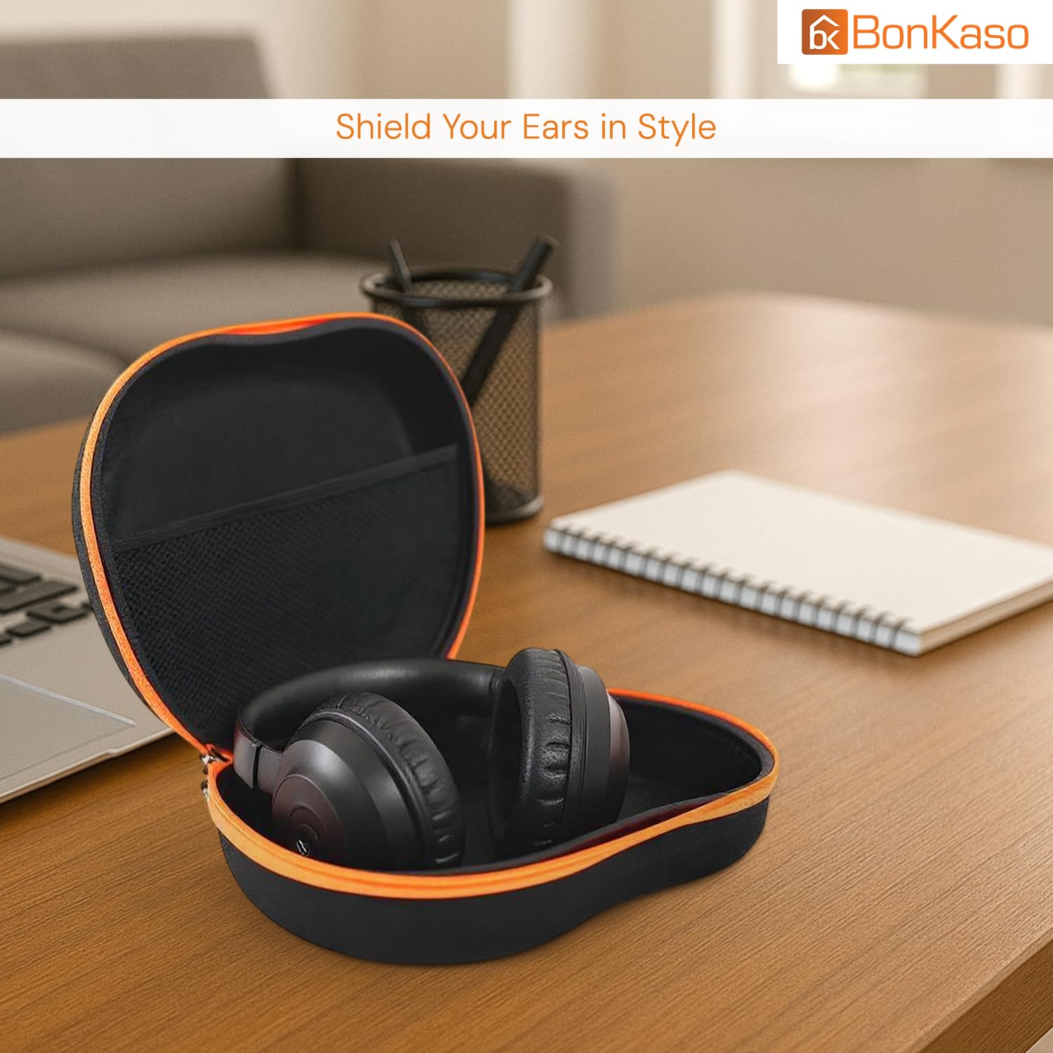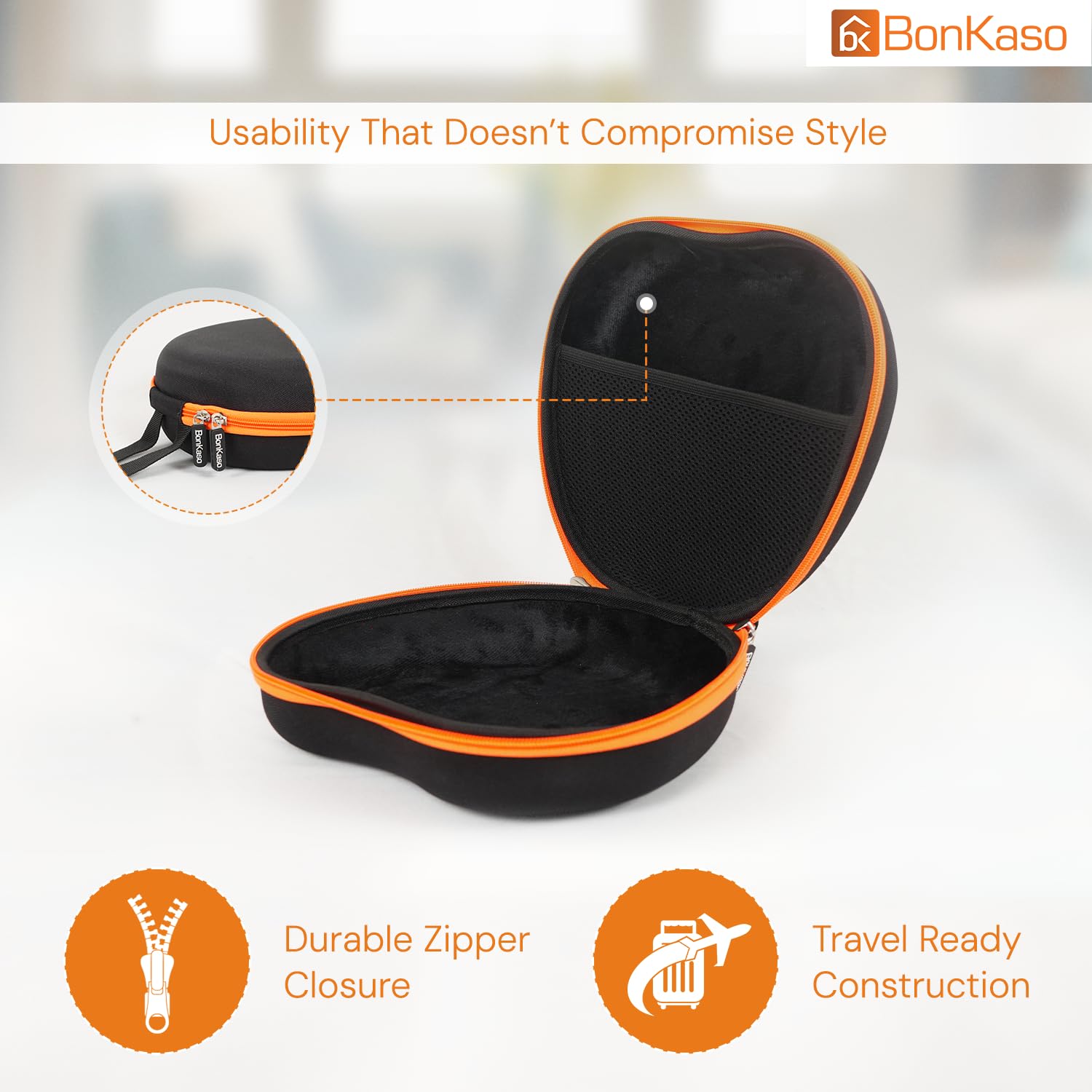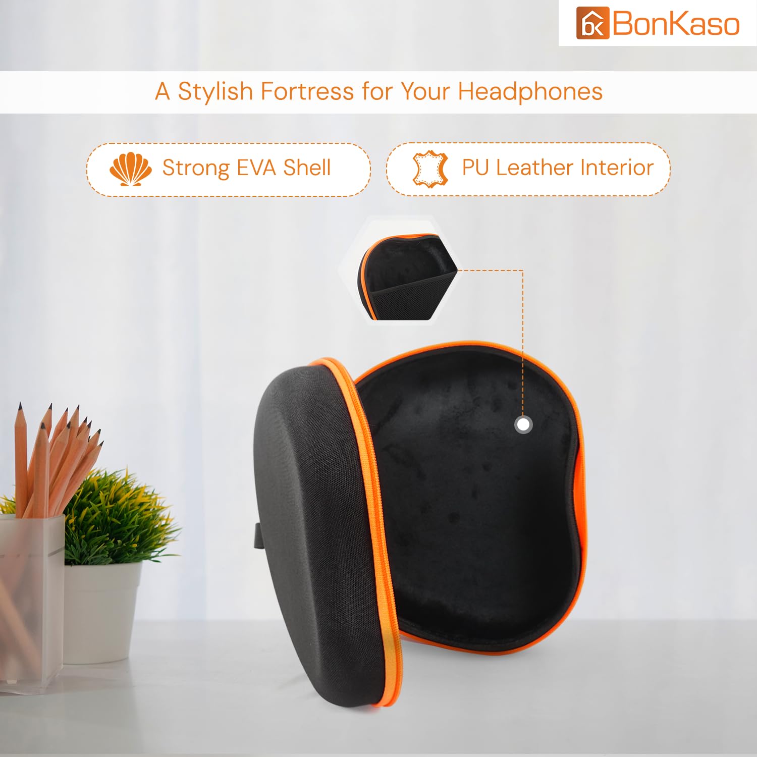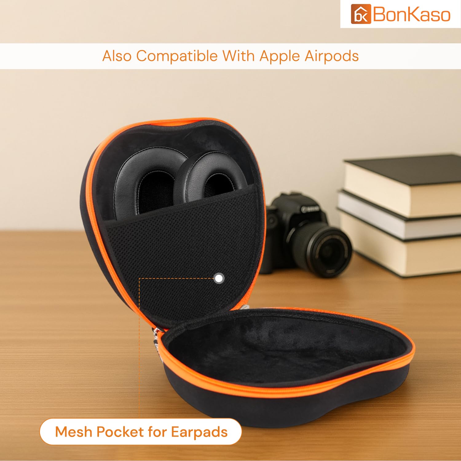 BonKaso AirPods Max Case โ€“ Hard Shell Portable Headphone Carrying Case with Earpads Storage | Compatible with AirPods Max | Anti-Pressure Vinyl Travel Pouch โ€“ Black & Orange