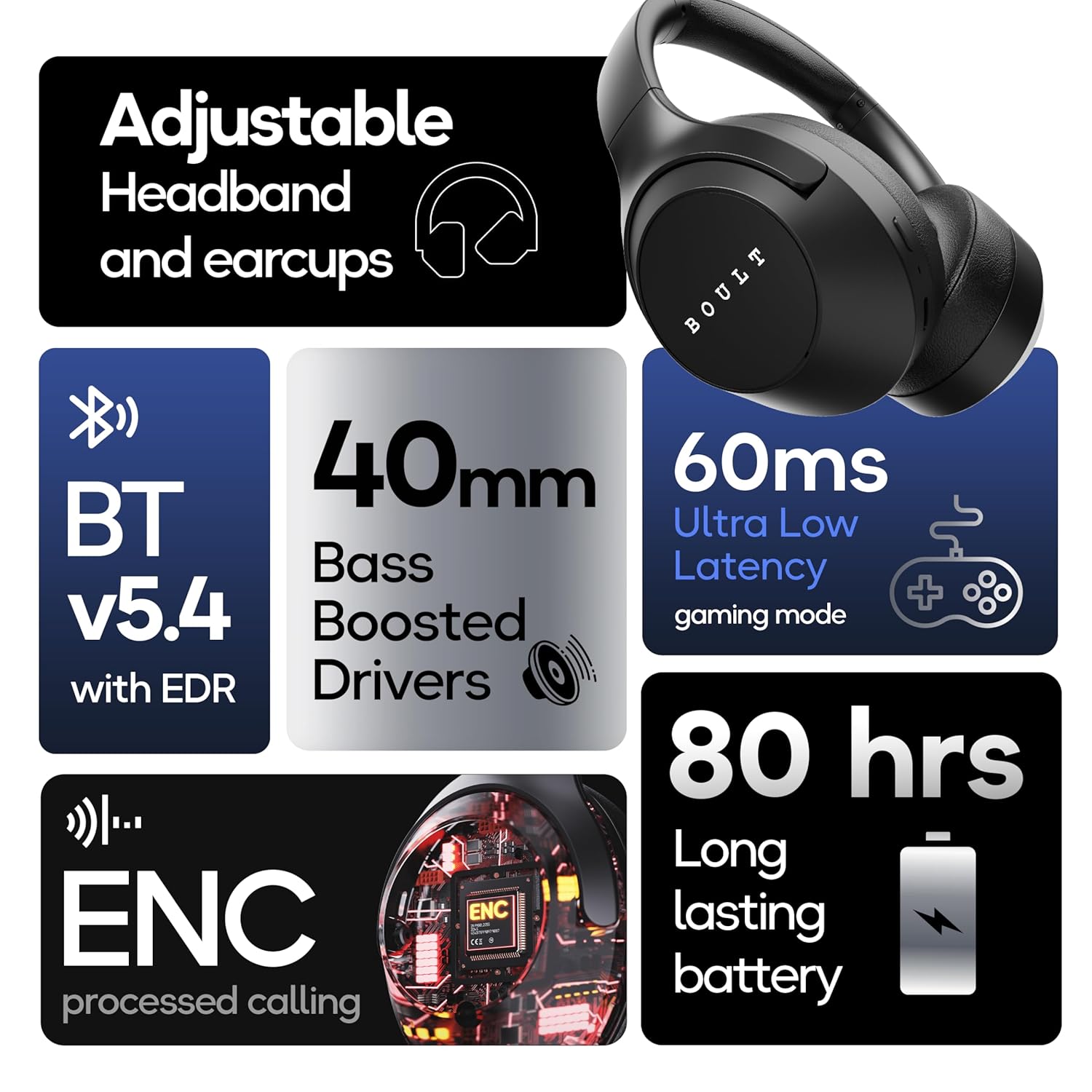 ✅ 80H Playtime: Boult Flex wireless over-ear headphones offer an impressive 80 hours of playtime, ensuring you can enjoy non-stop music, calls, or gaming without worrying about frequent charging interruptions.
