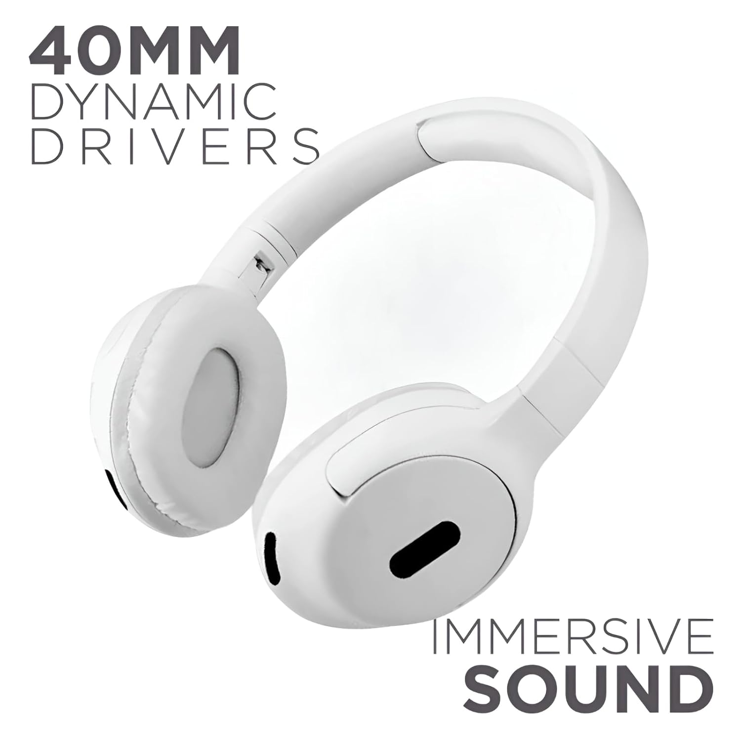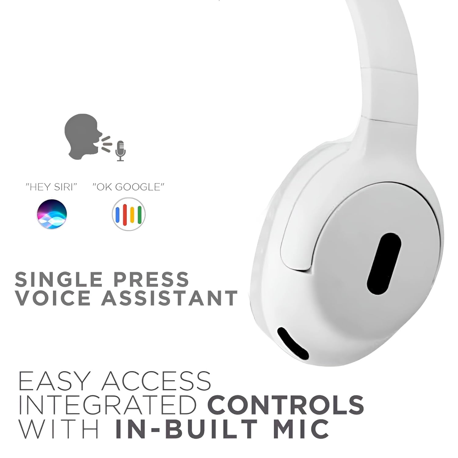 COREGENIX Over Ear IMAX Bluetooth Headphones with Upto 20 Hours Playback, 40MM Drivers, Soft Padded Ear Cushions and Physical Noise Isolation(White)