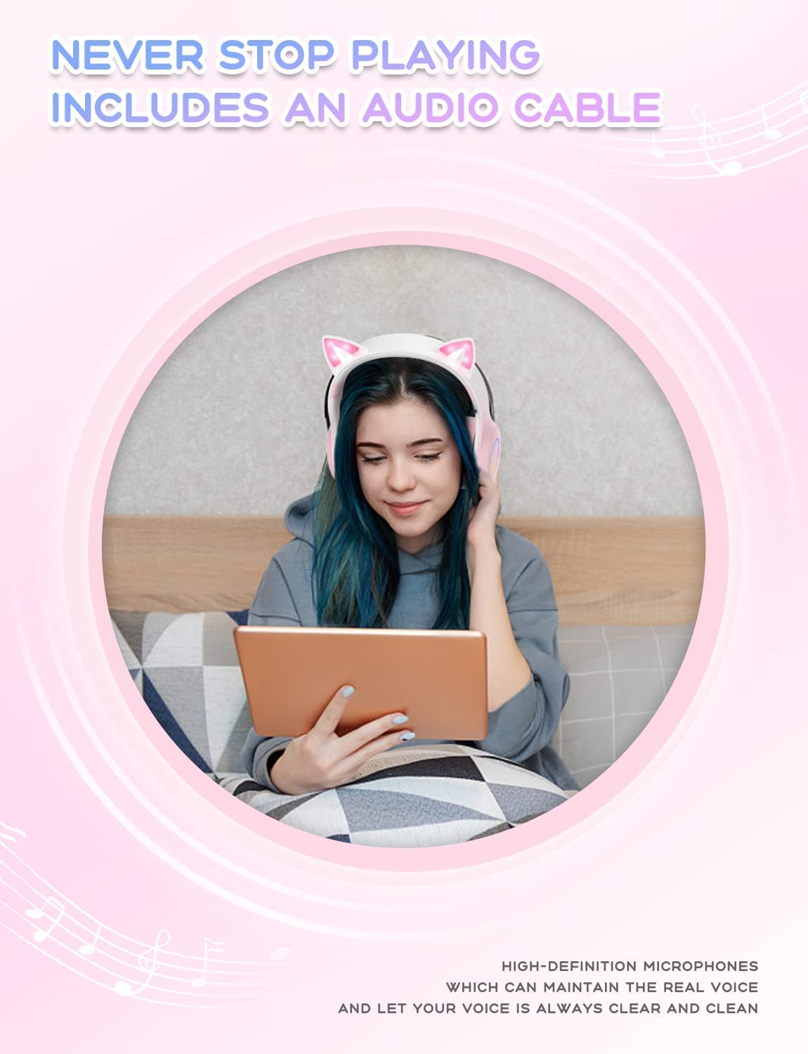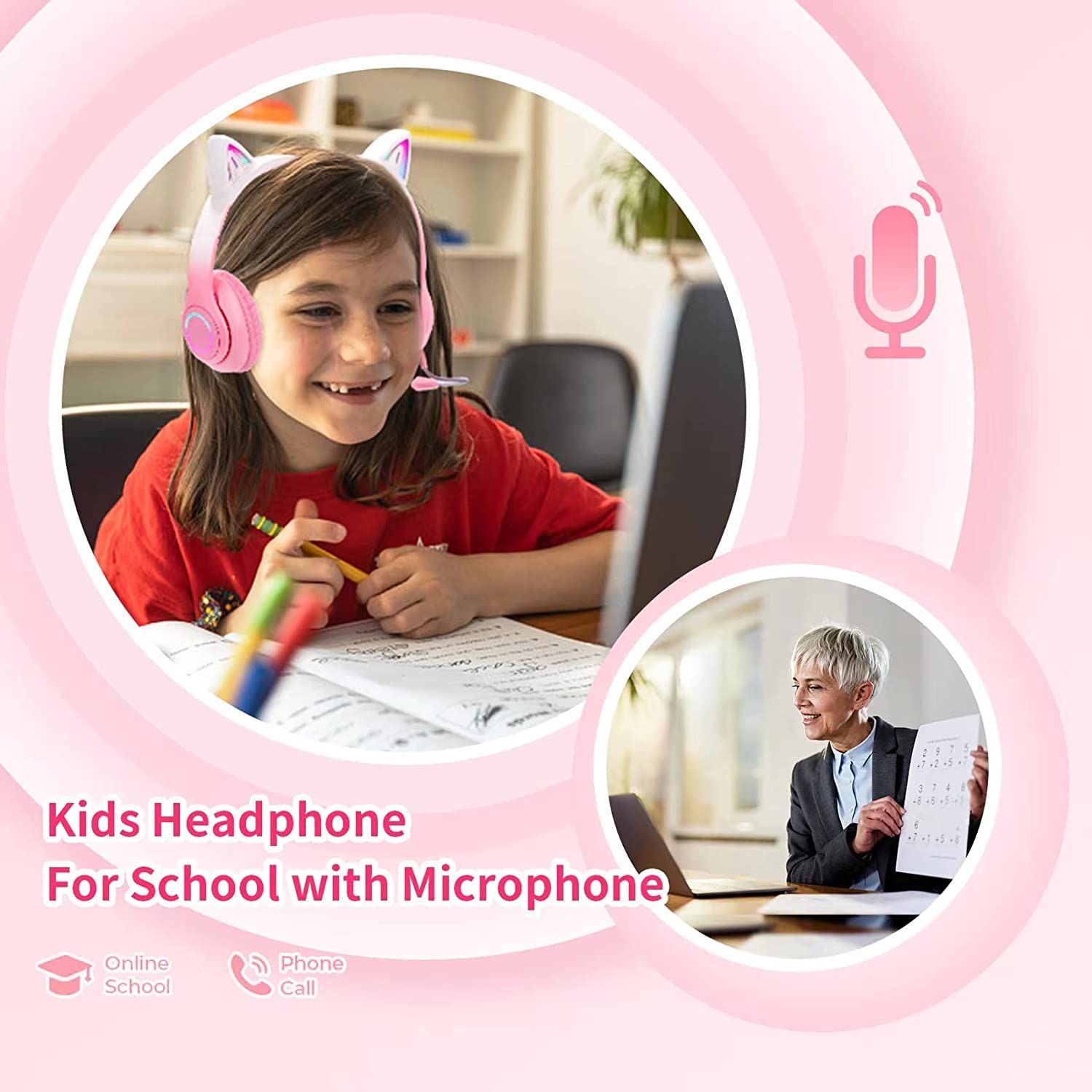 【Cat Ear Headphones】This lovely kid Bluetooth headphones designed with cute cat ears and LED colored lights, bring more fun to your little one when they immerse themselves in the music, movie, game, also making their headphones very special. A perfect gift for kids! ( You can turn off the LED lights as your wish. )