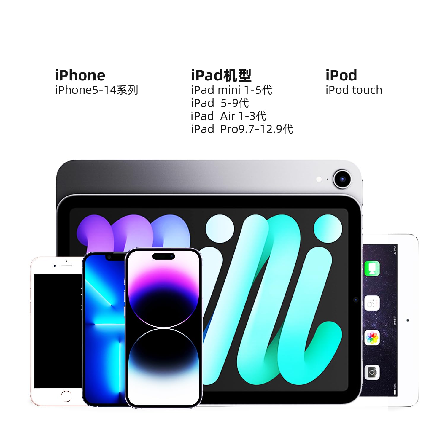 Works with all devices that have Lighting connector and support iOS 10 or later, including 100% compatible with iPhone 14/14 plus/ iPhone 14 Pro/ iPhone 14 Pro Max/13/13Mini/13 Pro/13 Pro Max/12/12 Mini/12 Pro/12 Pro Max/11/11 Pro/11 Pro Max/X/XS/XS Max/XR8/8 Plus/7/7 Plus/iPad Pro/Mini 4/Air 2